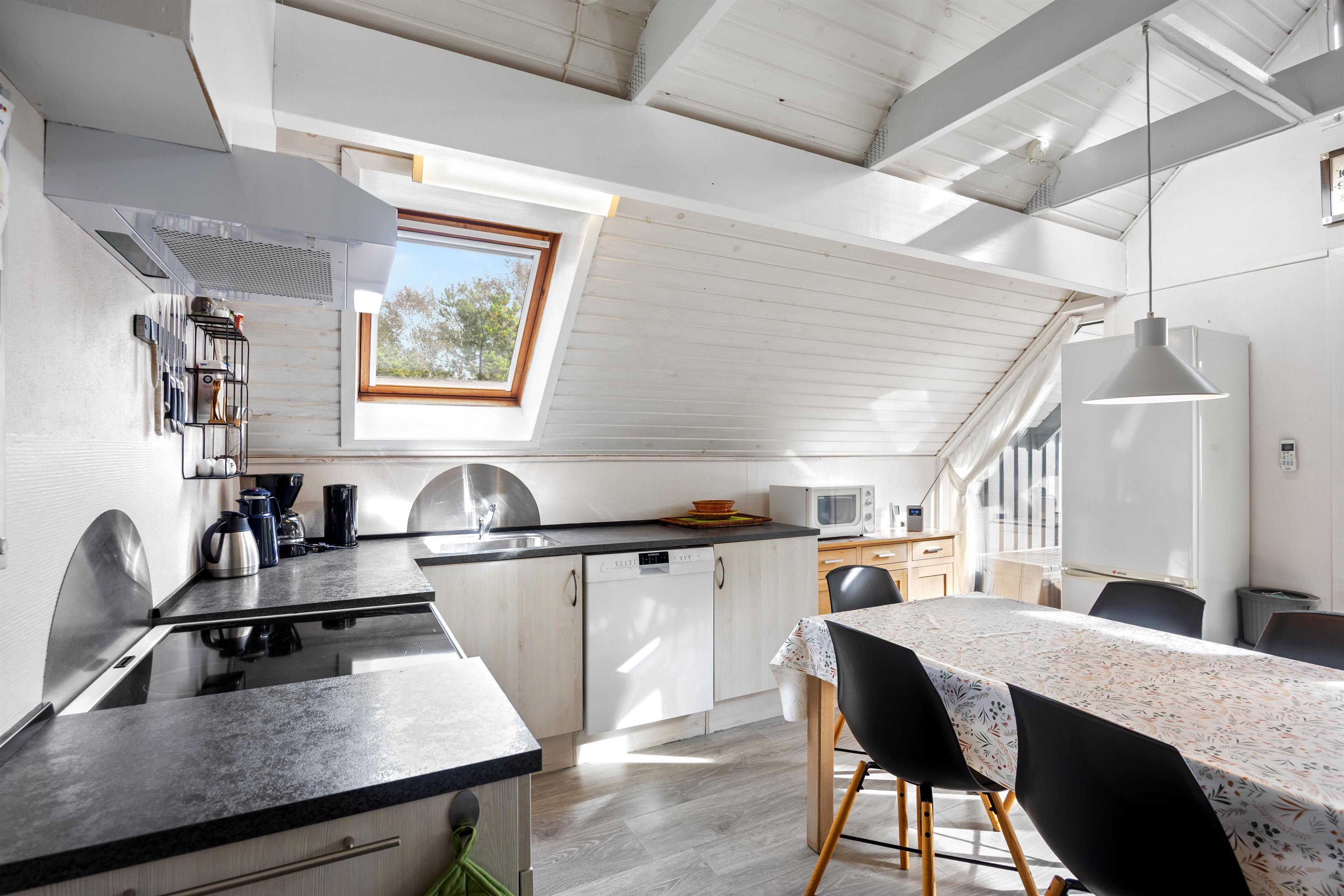 Når I træder ind i sommerhuset, bydes I velkommen af et lyst og indbydende interiør med en velafstemt indretning, der skaber en følelse af ro og hjemlighed. Den åbne stue, komplet med fladskærms-TV og en charmerende brændeovn, danner rammen om hyggelige aftener og samvær. Her mærkes en omhyggelig opmærksomhed for detaljerne, som forstærker den trygge atmosfære og gør det nemt at slappe af. Den rolige stemning i rummet indbyder til stille stunder, hvor man kan lade tankerne flyve, mens den hjemlige indretning giver en følelse af sikkerhed og velvære. Køkkenet, der fungerer som husets hjerte, er udstyret med moderne faciliteter såsom opvaskemaskine, mikroovn, et køleskab med integreret frostboks samt et el-komfur med ovn – alle nøje udvalgt for at gøre madlavningen til en fornøjelse. Det gennemtænkte design af køkkenet skaber en indbydende plads, der både støtter praktisk tilberedning af måltider og bidrager til fællesskabet om spisebordet. De komfortable soveværelser, indrettet med bløde tæpper og et velovervejet valg af belysning, bidrager til en beroligende atmosfære, der sikrer en fredfyldt nattesøvn for både børn og voksne. Desuden bidrager gratis fibernet til en underholdende hverdag, så I altid føler jer opdaterede og forbundet. Et særligt højdepunkt er saunaen, der tilbyder en luksuriøs mulighed for afslapning og velvære – perfekt til at genoplade batterierne efter en aktiv dag i naturen. Samlet set skaber indretningen og de moderne løsninger i huset en behagelig balance, der forener funktionalitet med en smuk indbydende atmosfære – Et sandt tilflugtssted af ro og komfort hvor I straks føler jer hjemme.