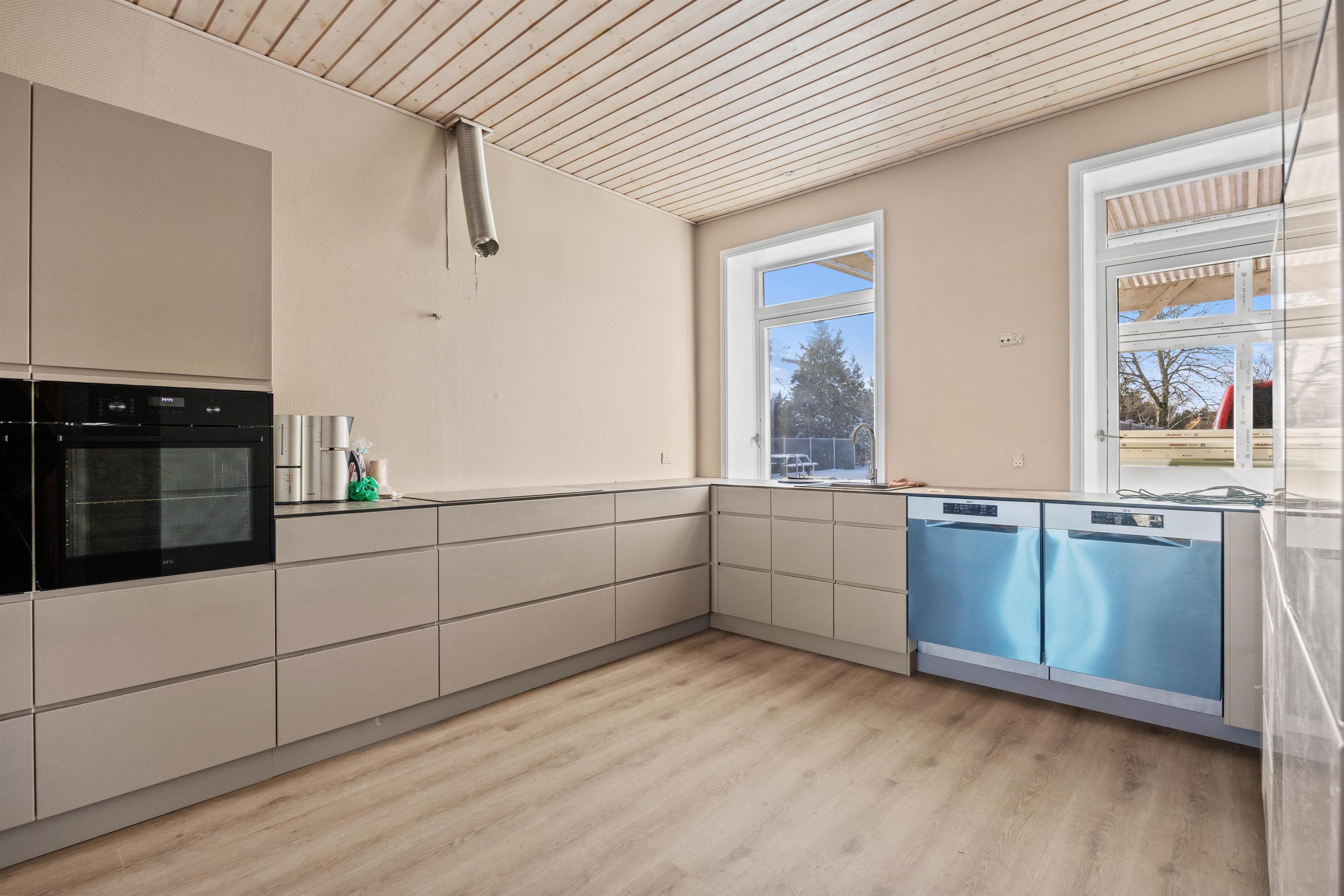 Uanset om det er foran den knitrende brændeovn eller blot afslapning på terrassen – så finder alle her deres yndlingssted. Det fuldt udstyrede køkken med 2 opvaskemaskiner, 2 komfur og en stor fryser gør det perfekt at spise morgenmad sammen, lave mad eller prøve lækre lokale specialiteter. Luft-til-vand-varmepumpen sikrer et behageligt indeklima året rundt. Der er også mulighed for at oplade elbil.