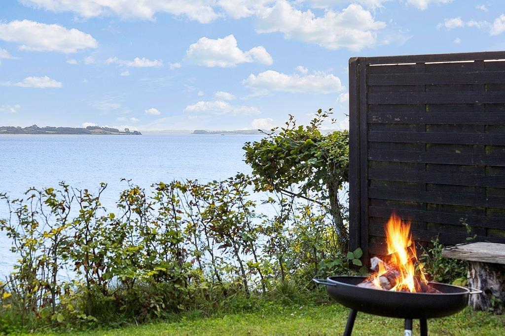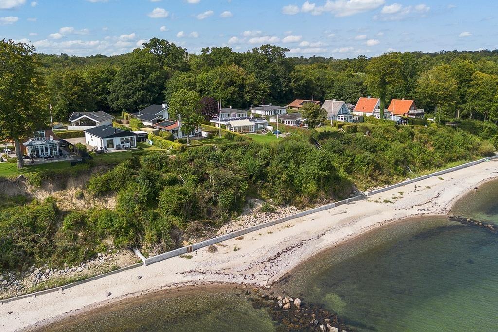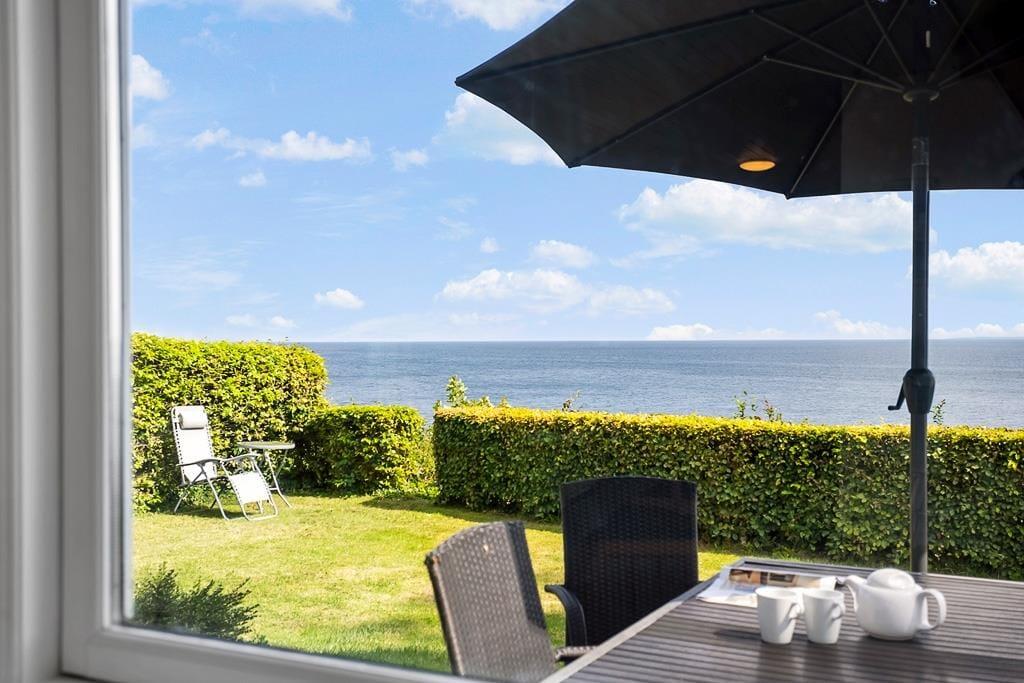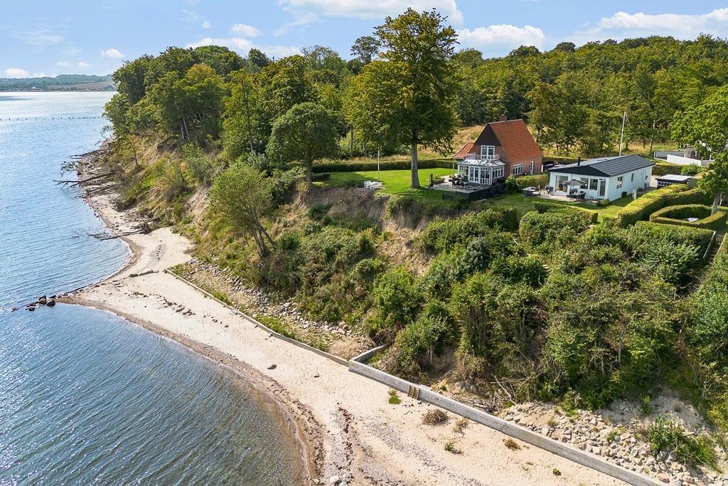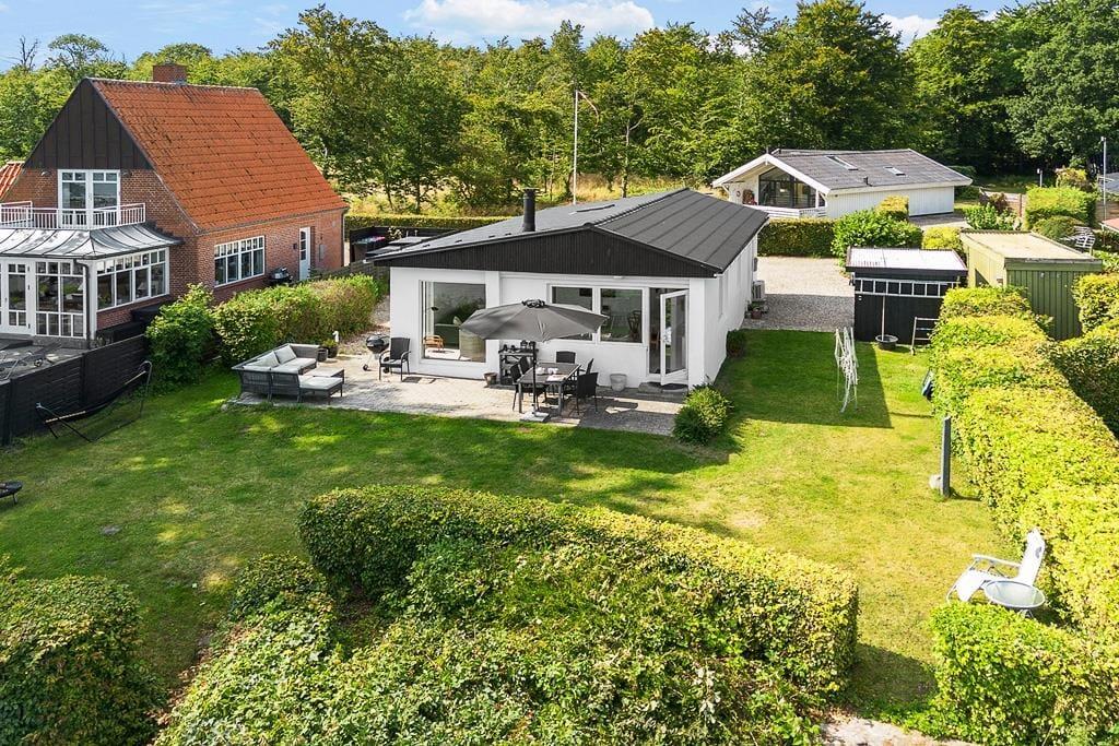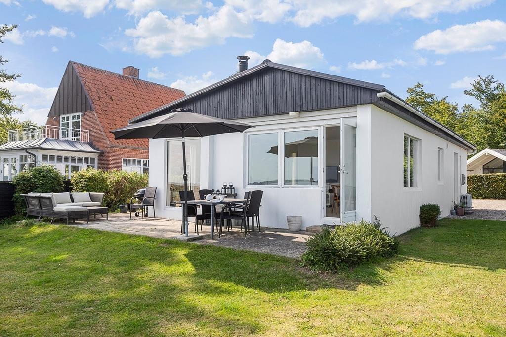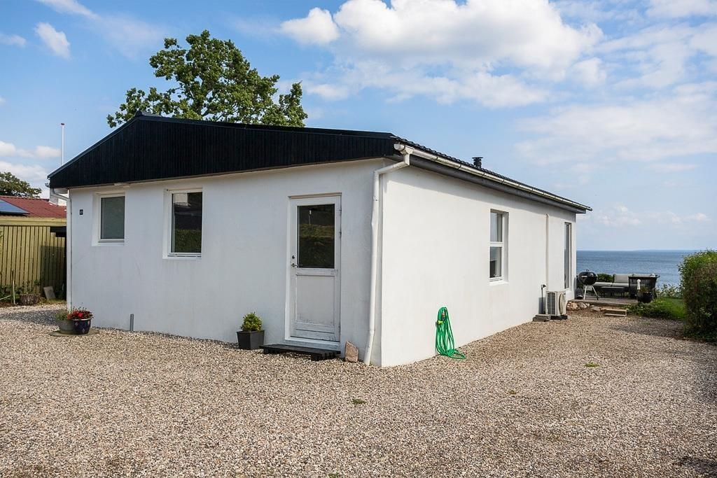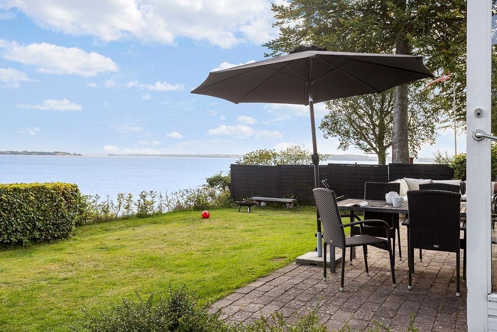 Det er oplagt at bruge mange timer under åben himmel, for det er udenfor, at sommerhusets placering for alvor kommer til sin ret. Her finder du en skøn terrasse, hvor du kan nyde morgenkaffen med blikket rettet ud over vandet – måske mens duggen stadig ligger som et let slør over landskabet. Terrassen indbyder også til lange sommeraftener med grillmad, latter og snak i stearinlysets skær. Har du lyst til at trække dig lidt tilbage med en bog eller bare tage en lille lur i solen, kan du finde dig en rolig krog og lade sanserne fyldes af duften af græs og lyden af bølgerne i det fjerne. Uanset om solen bager fra en skyfri himmel, eller regnen stille trommer mod tagets tagrender, giver sommerhusets uderum dig plads til at mærke naturen – helt tæt på.