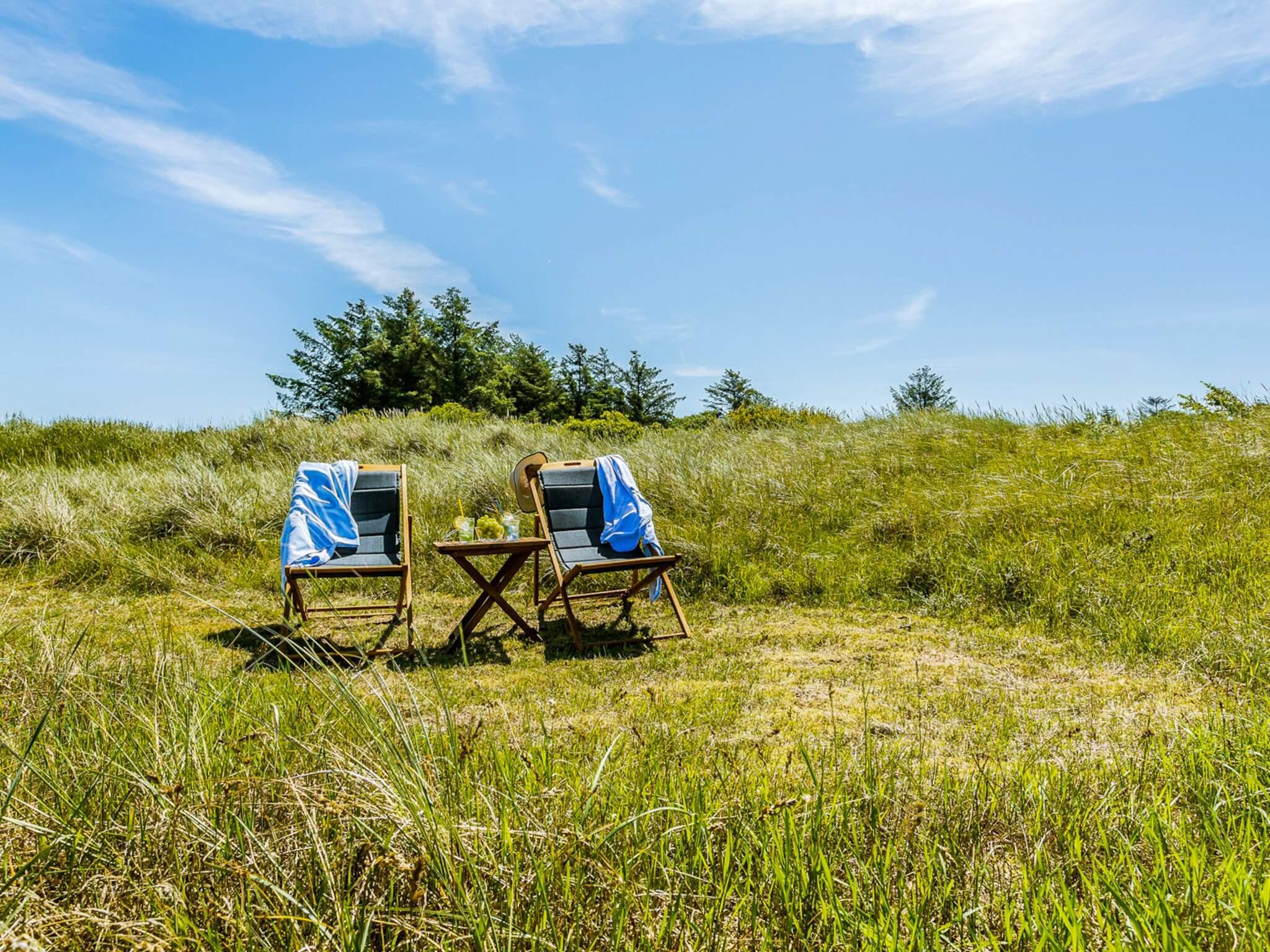 Ude på den store grund har I ligeledes masser af plads og fine forhold til livsnydertilværelsen. Som tillæg til saunaen er der både en udendørs bruser og et vildmarksbad på terrassen, så I kan se frem til en rigtig wellnessseance under åben himmel.” Udespabadet er lukket fra den 01. november til d. 31. marts. Ønsker I at benytte udespabadet i vinterhalvåret, så kan det arrangeres mod betaling DKK 500,00. Dog skal benyttelse af udespabadet i vinterperioden bestilles forud for ankomsten.” Et kæmpestort terrassemiljø breder sig syd og vest. Terrassen byder på både afskærmede, overdækkede og helt åbne områder. Legetårn med klatrevæg, rutsjebane, sandkasse, trampolin (benyttes på eget ansvar/forsikring) og gynger, sørger for underholdning til børnene.