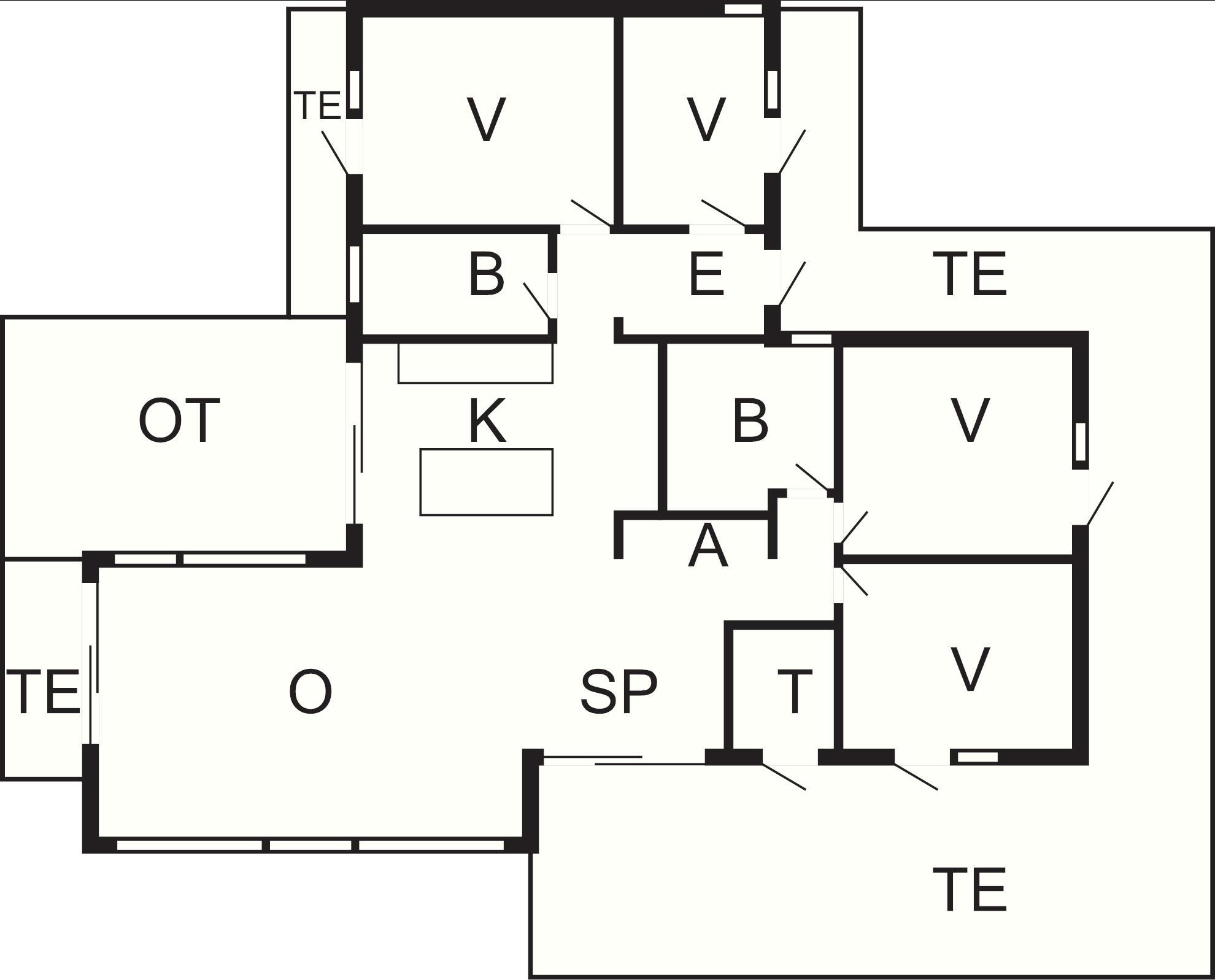 4 Soveværelser: (1DS+1K)+(1DS)+(1DS)+(1DS), barneseng