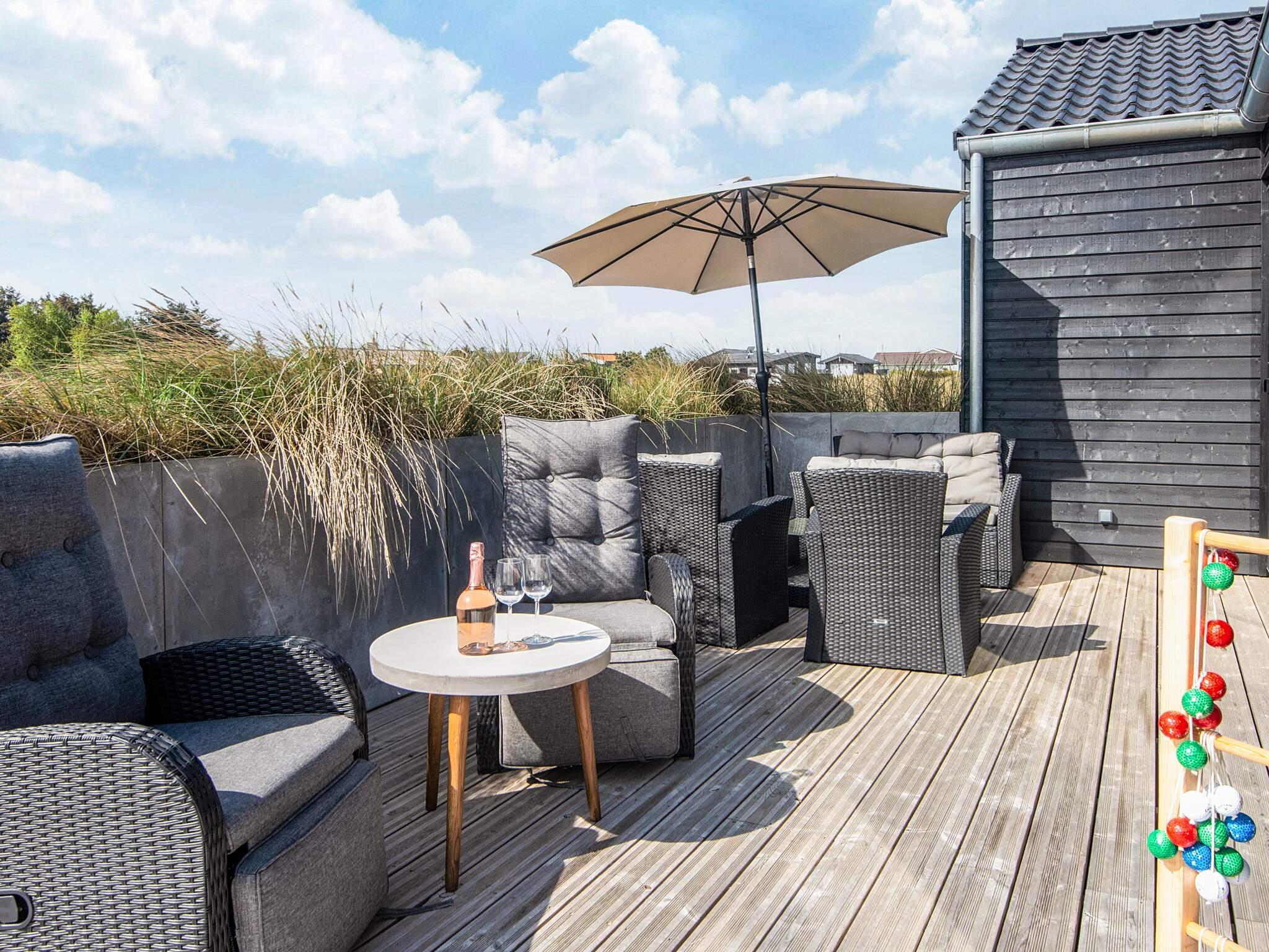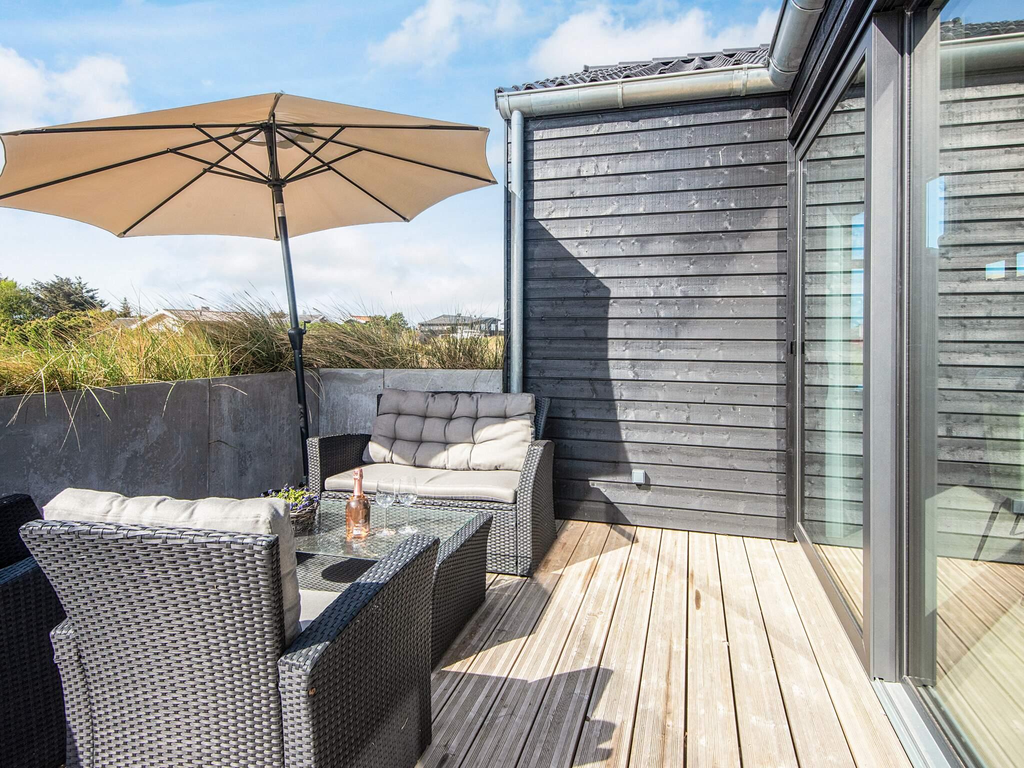 En dejlig terrasse omkranser huset, så du altid kan finde et solrigt sted, uanset hvornår på dagen det er. Der er overdækkede områder, hvis du foretrækker at sidde i skyggen på lyse sommeraftener.