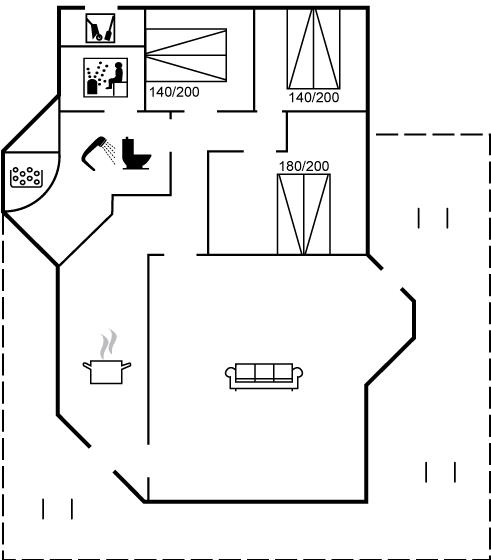 Der er i alt 3 soveværelser. Sovepladserne fordeler sig på: 6 sovepladser i dobbeltsenge. 2 sovepladser på madrasser. 2 af disse sovepladser befinder sig på husets hems. Derudover er der 1 stk. barneseng.