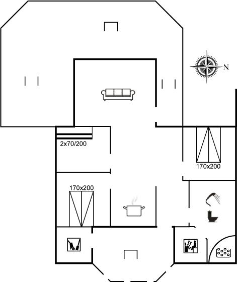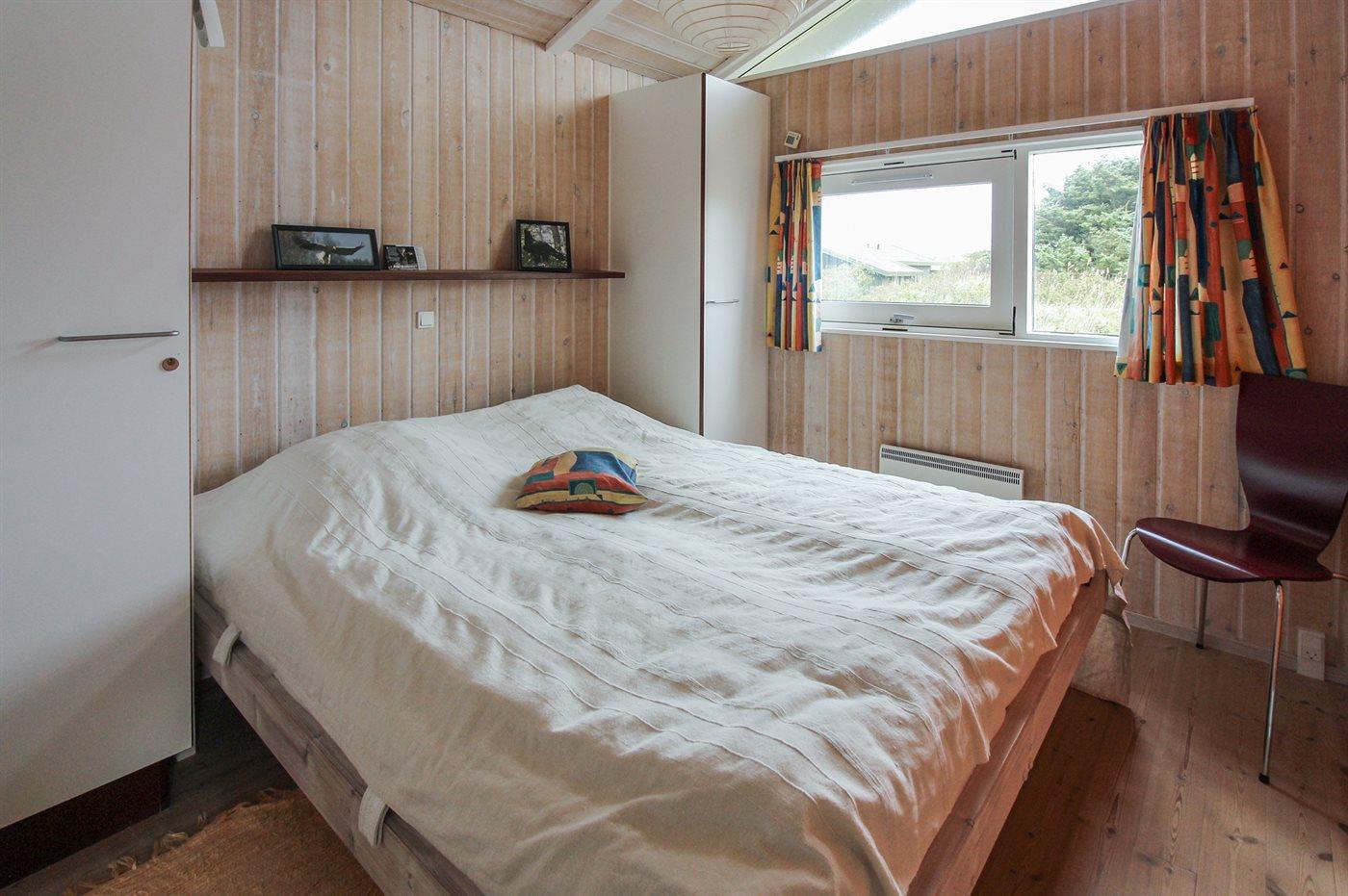 Der er i alt 3 soveværelser. Sovepladserne fordeler sig på: 4 sovepladser i dobbeltsenge. 2 sovepladser i køjeseng. Derudover er der 1 stk. barneseng.