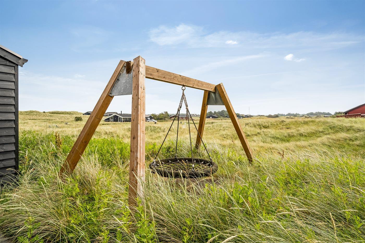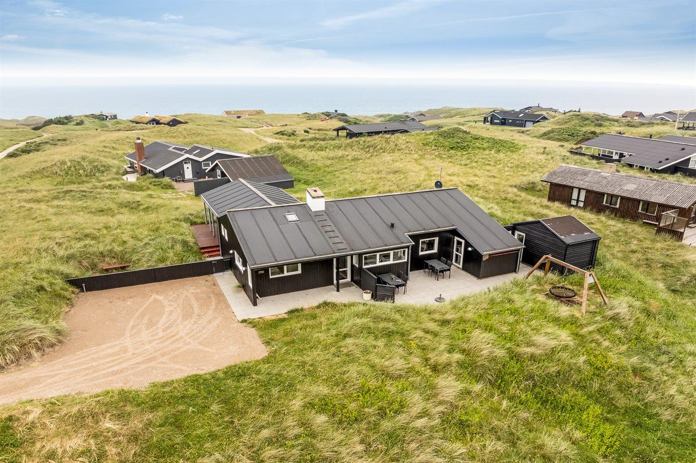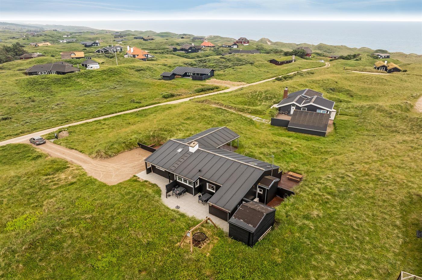 Dejligt sommerhus bygget i 2004 med nytilbygget (2007), hævet stue med flot havudsigt. Huset er beliggende i et kuperet klitområde og fra både hus og grund er der en dejlig havudsigt. Gode, ugenerte terrasser med havemøbler. Indvendig er der opvarmede klinkegulve samt asketræsgulve i værelser og stue. Flot, veludstyret køkken med opvaskemaskine, mikrobølgeovn, fryser og komfur med keramiske kogeplader samt varmluftovn. Stort, pragtfuldt badeværelse med 2-pers. spa, hvorfra udsigten til havet kan nydes samt bruseniche og direkte adgang til sauna. Desuden vaskemaskine og tørretumbler. Ekstra badeværelse med stor bruseniche. Hyggelig, nymøbleret stue (2007) i forskudt plan, udstyret med bl.a. TV med parabol (digital), chromecast, DVD-afspiller, stereoanlæg med CD-afspiller og brændeovn. 2 soveværelser med dobbeltseng og havkig. 1 soveværelse med køjeseng. Hems med 2 sovepladser (springmadrasser). Der er installeret energibesparende varmepumpe med aircondition-funktion. Sandkasse og gynge til børnene. Et godt sommerhus med en pragtfuld beliggenhed. Bemærk: Gratis brænde.