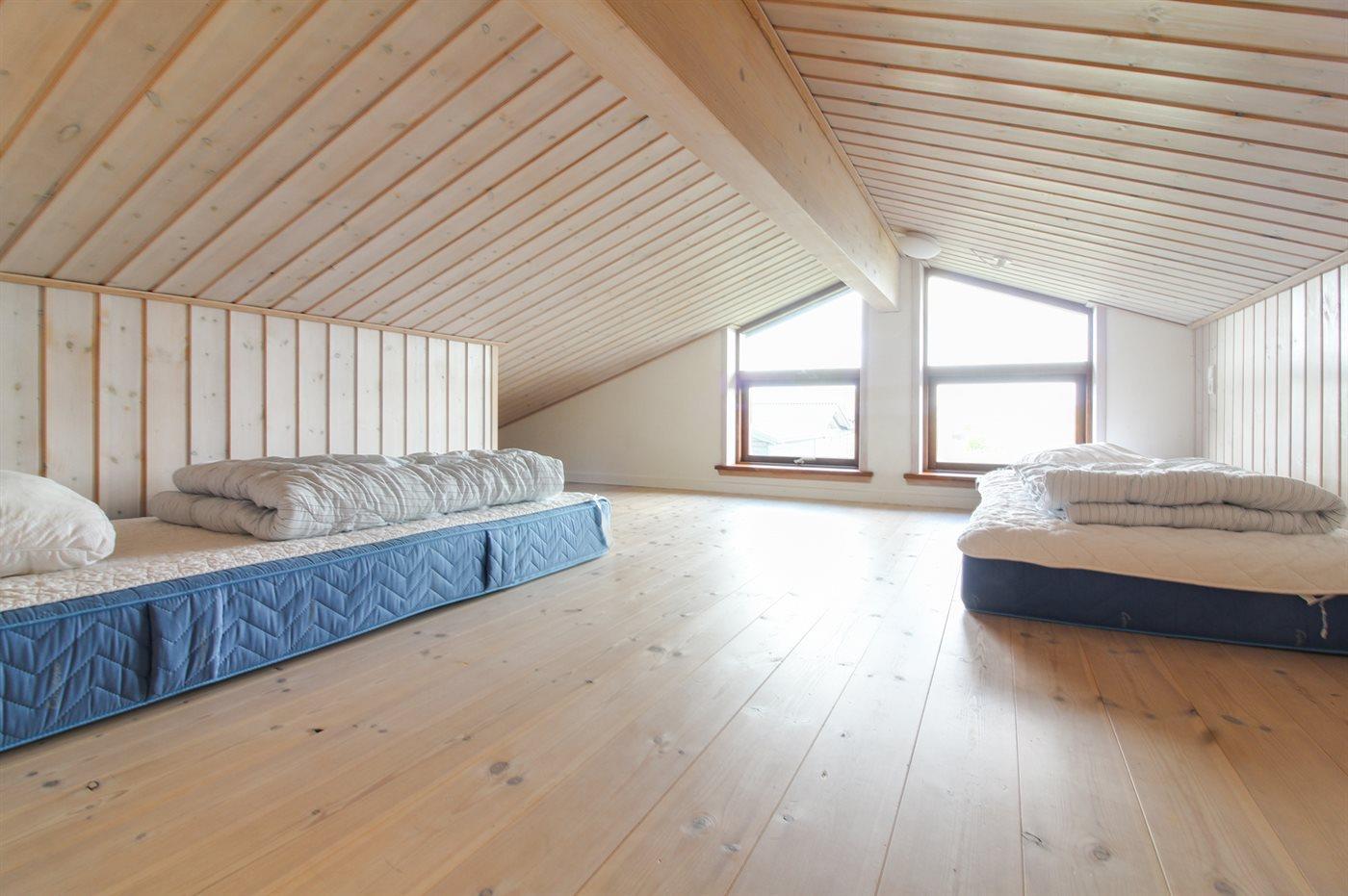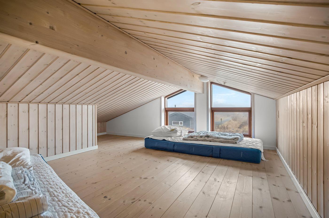 Huset er personligt indrettet med sans for detaljen og har stor afskærmet hems, hvor 2 af sovepladserne befinder sig.