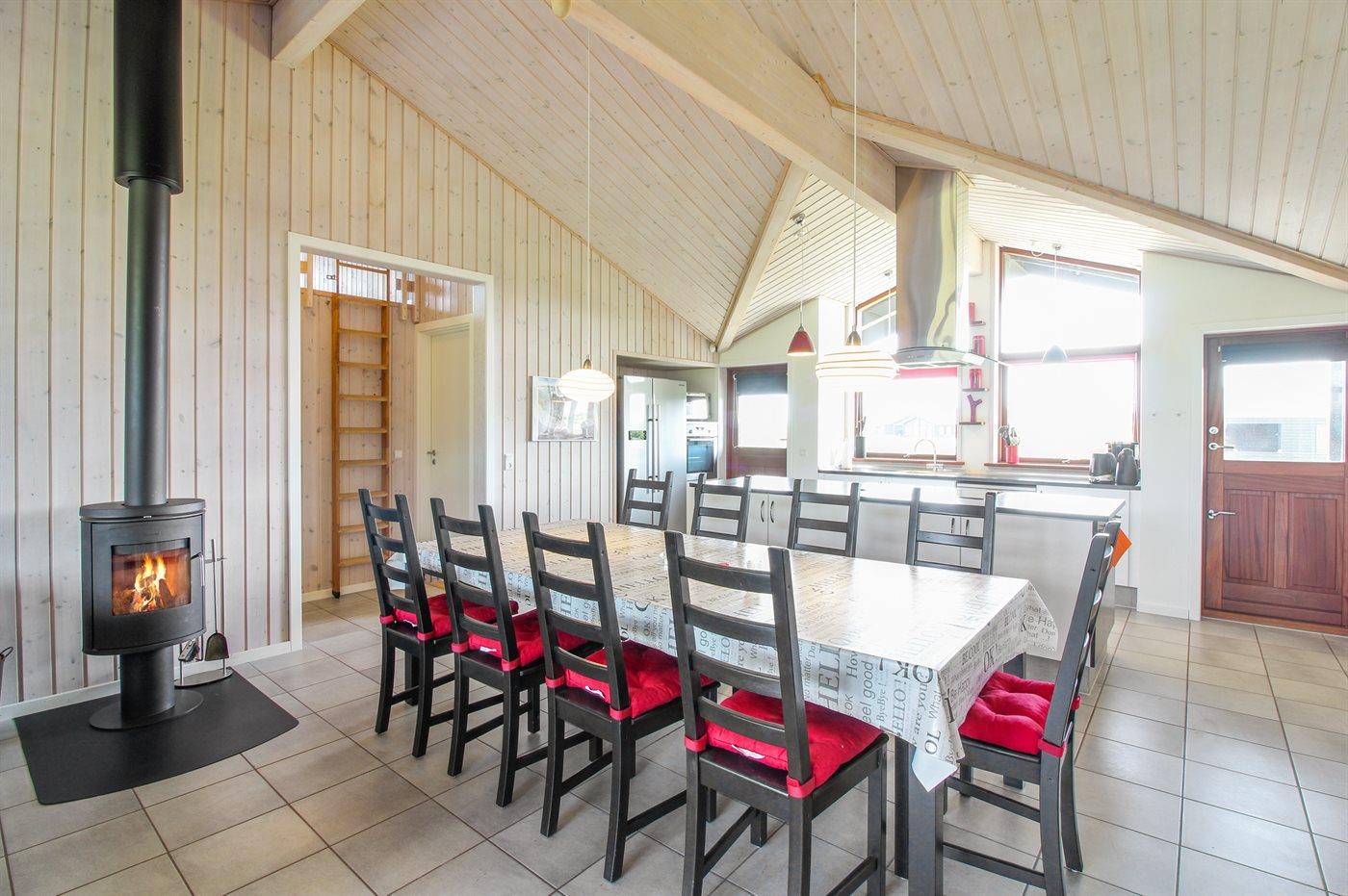 Sommerhuset egner sig til 10 personer samt 1 barn op til 3 år. 2 af sovepladserne er kun egnet til større børn (4-11 år). Ferieboligen er på 125 m² og er bygget i 2008. Det er tilladt at medbringe 4 husdyr. Der er jordvarme. Hele ferieboligen har gulvvarme. Ferieboligen har vaskemaskine. Tørretumbler. Frysekapacitet på 100 liter. Der er desuden brændeovn. Til de små er der 1 stk. barnestol.
