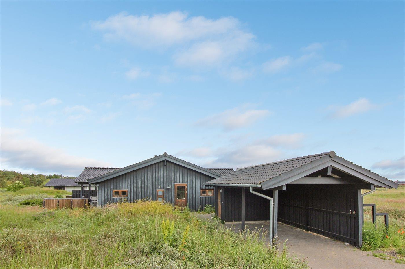 Ferieboligen er beliggende på en 2556 m² stor naturgrund. Der er 976 m til havet. Nærmeste forretning er beliggende i en afstand af 1360 m. Til ferieboligen hører 50 m² terrasseareal. Desuden er der 10 m² overdækket terrasse. Der er redskabsrum. Der er carport til rådighed. Der er installeret stik til opladning af elbil. Parkering ved ferieboligen.