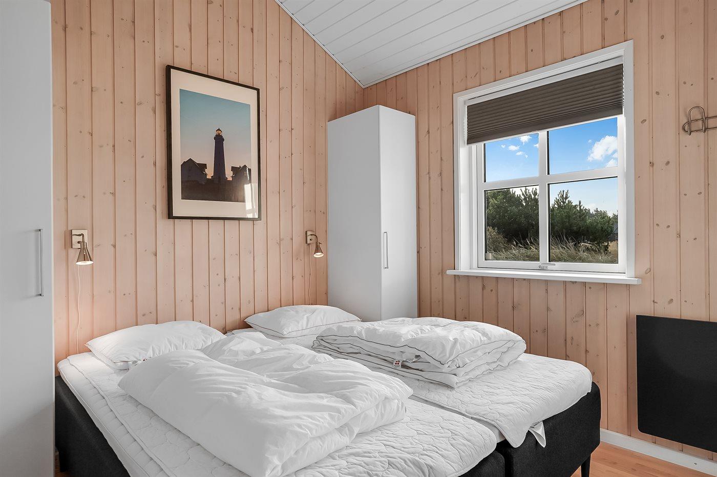 Der er i alt 4 soveværelser. Sovepladserne fordeler sig på: 6 sovepladser i dobbeltsenge samt 2 enkeltsenge. Derudover er der 2 stk. barnesenge.