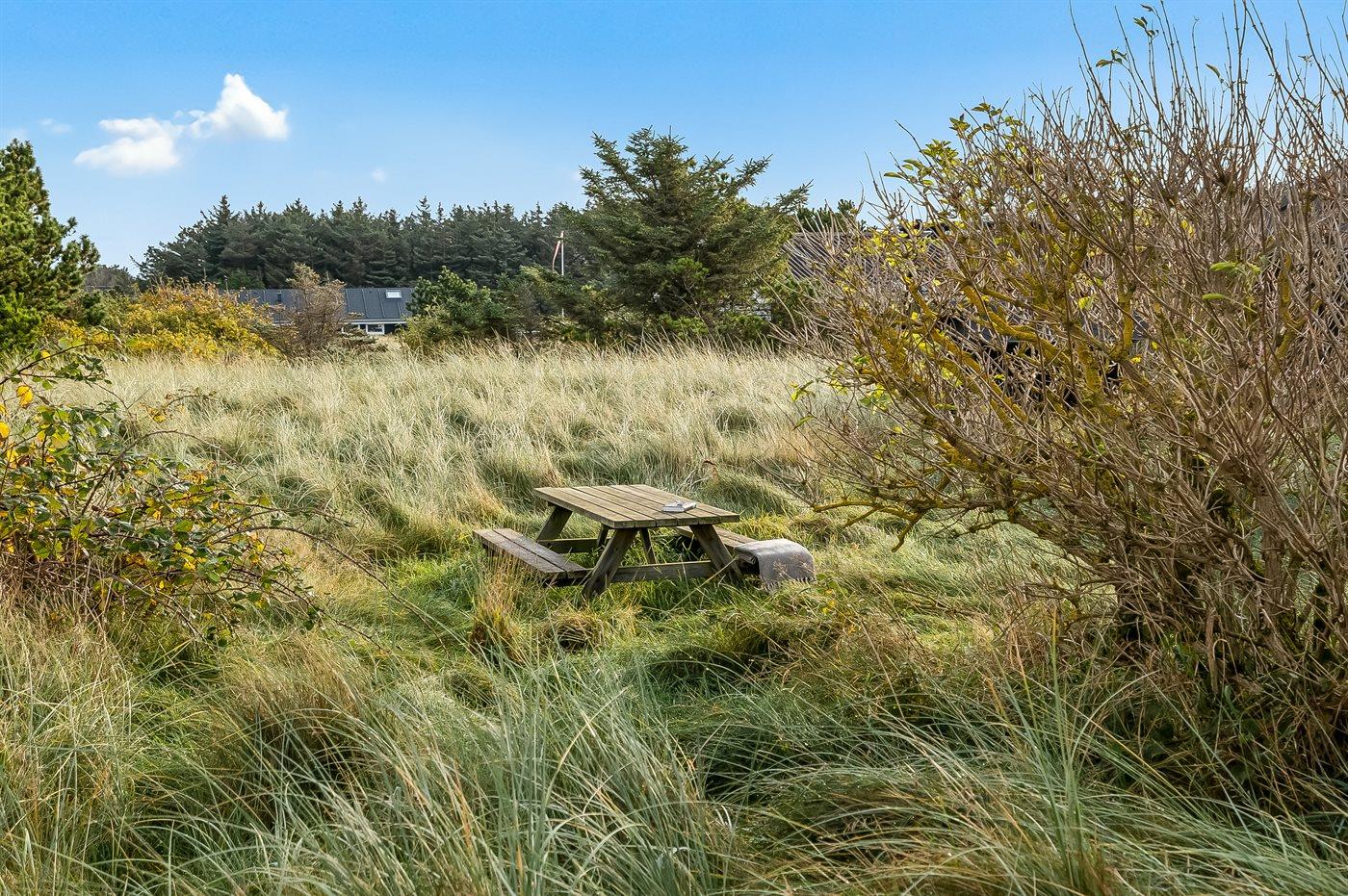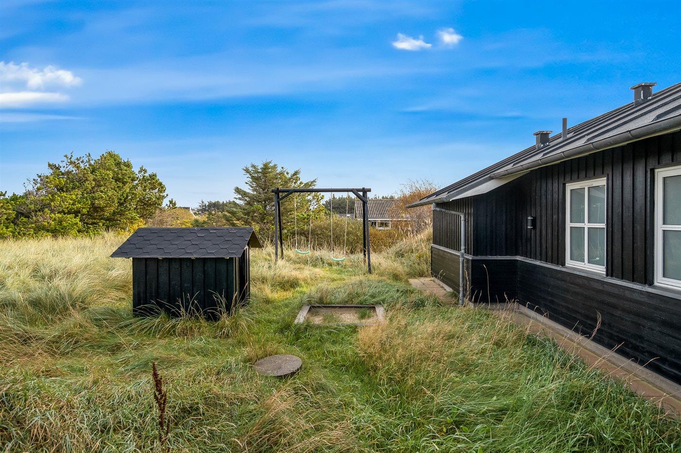 Ferieboligen er beliggende på en 2100 m² stor naturgrund. Der er 656 m til havet. Nærmeste forretning er beliggende i en afstand af 600 m. Til ferieboligen hører 12 m² åbent terrasseareal. Desuden er der 28 m² overdækket terrasse. Der er gynger, sandkasse og legehus til de små.