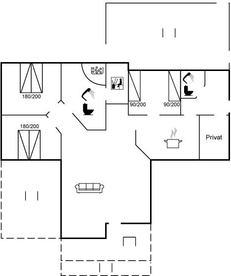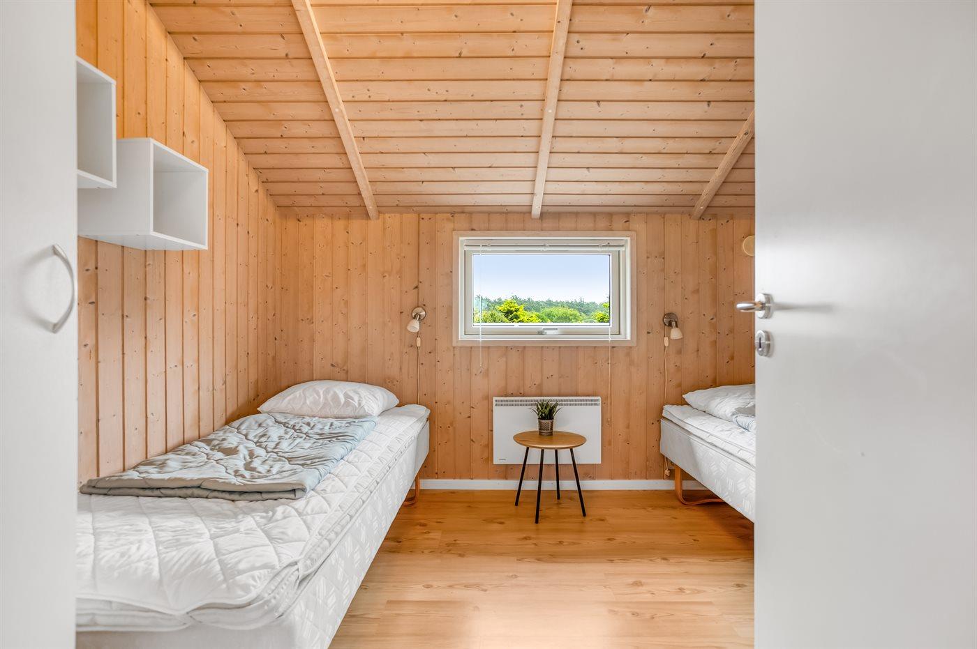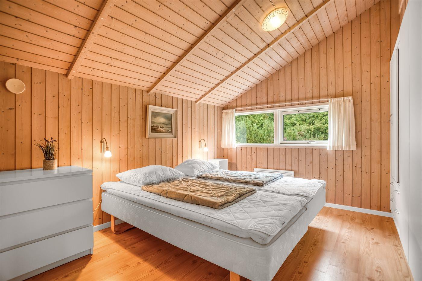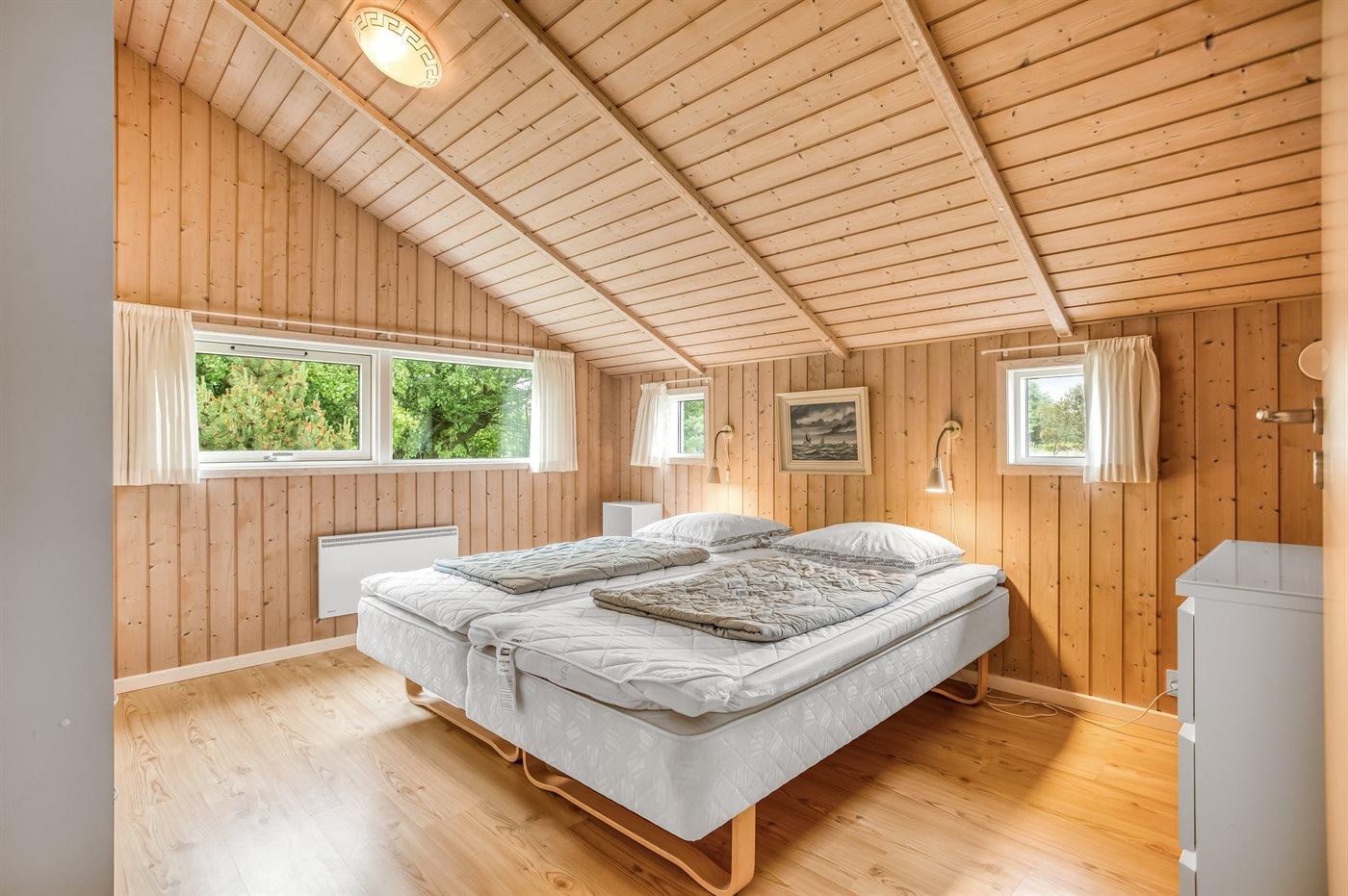 Der er i alt 3 soveværelser. Sovepladserne fordeler sig på: 4 sovepladser i dobbeltsenge. 2 sovepladser i enkeltsenge.