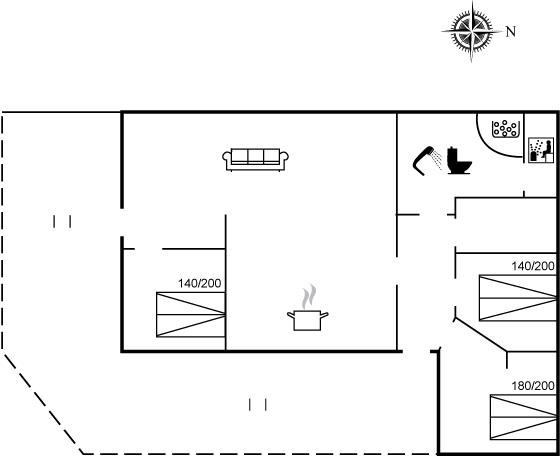 Der er i alt 3 soveværelser. Sovepladserne fordeler sig på: 6 sovepladser i dobbeltsenge. Derudover er der 1 stk. barneseng.