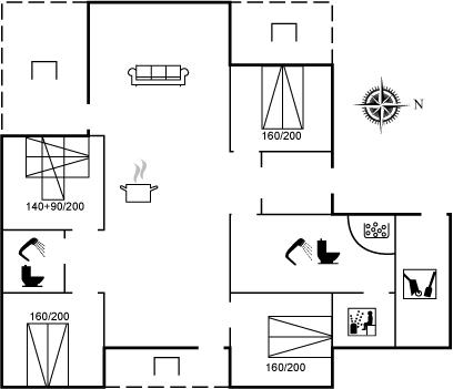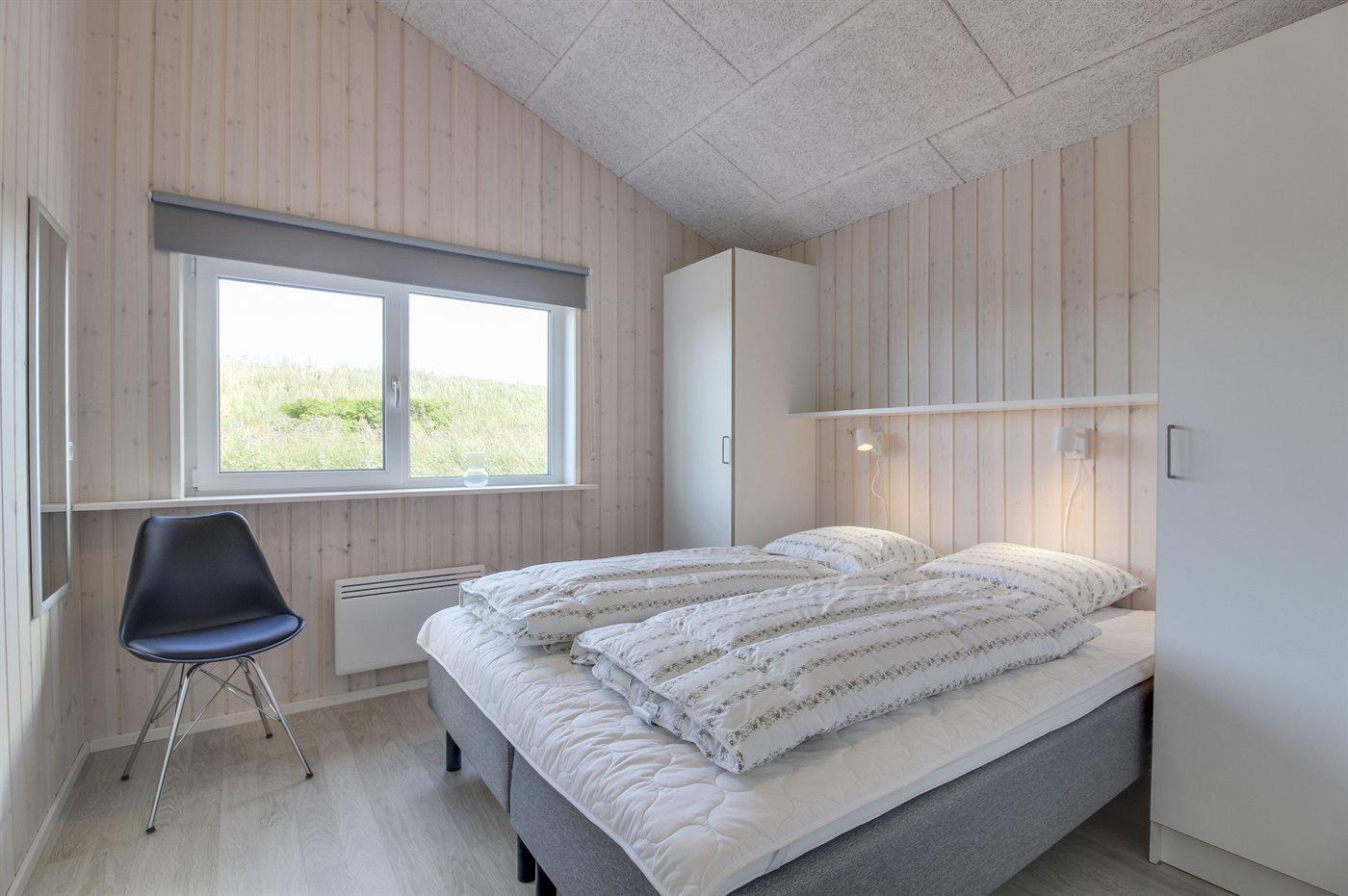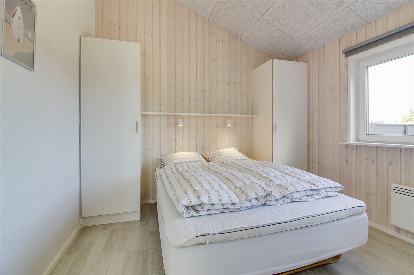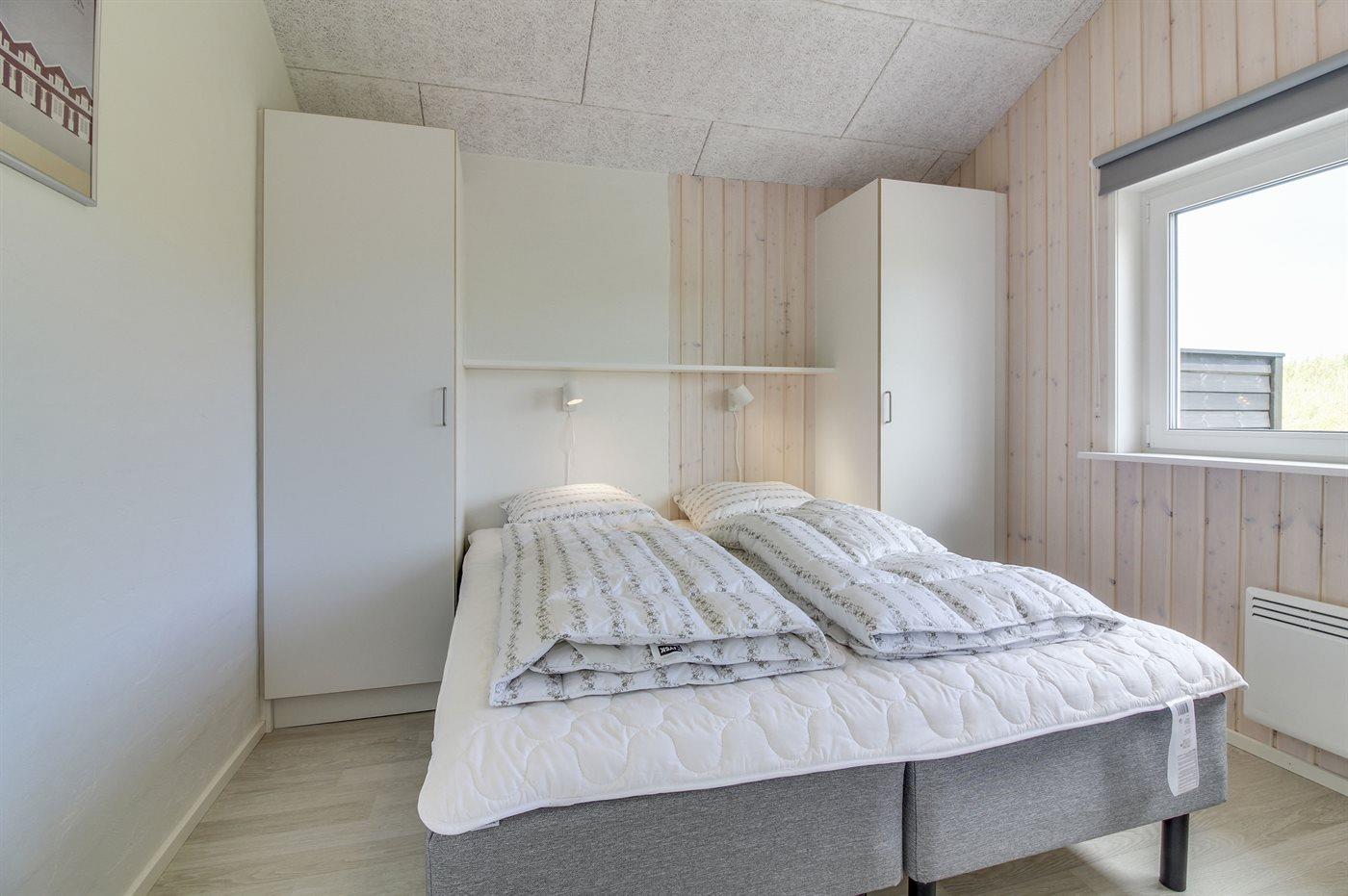 Der er i alt 4 soveværelser. Sovepladserne fordeler sig på: 6 sovepladser i dobbeltsenge. 3 sovepladser i køjesenge. Derudover er der 1 stk. barneseng.