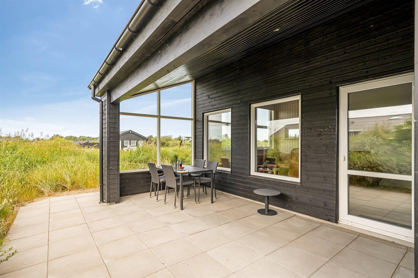 Moderne sommerhus nær Tornby strand med spa, sauna og store terrasser.