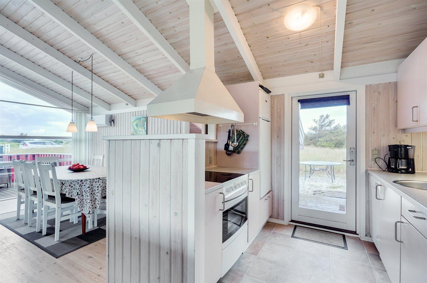 Køkkenet er udstyret med 1 køleskab. Der er 4 keramiske kogeplader, varmluftovn, mikrobølgeovn samt opvaskemaskine.
