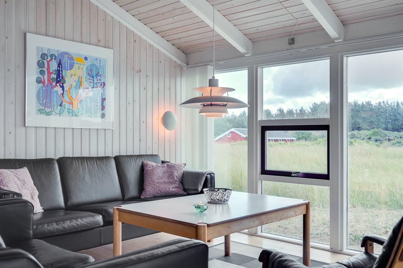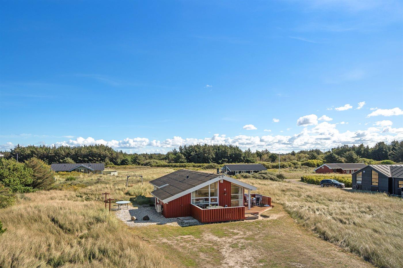 Et lyst og velholdt sommerhus beliggende på en stor grund i rolige, naturskønne omgivelser - opført i 1995 og løbende moderniseret og vedligeholdt. Huset ligger i ferieområdet ved Tornby Strand syd for Hirtshals - ikke langt fra havet og stranden. Fra husets terrasser, hvor I kan nyde dejlige og afslappende timer i det fri, er der direkte adgang til den store ugenerte klit- og naturgrund.