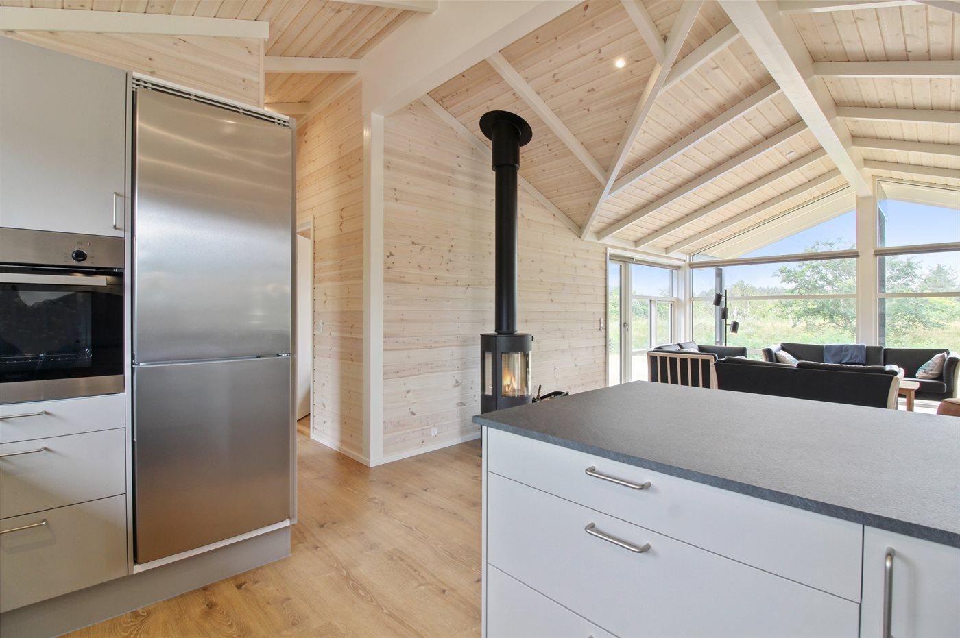 Køkkenet er udstyret med 1 køleskab. Der er 4 induktionskogeplader, varmluftovn samt opvaskemaskine.