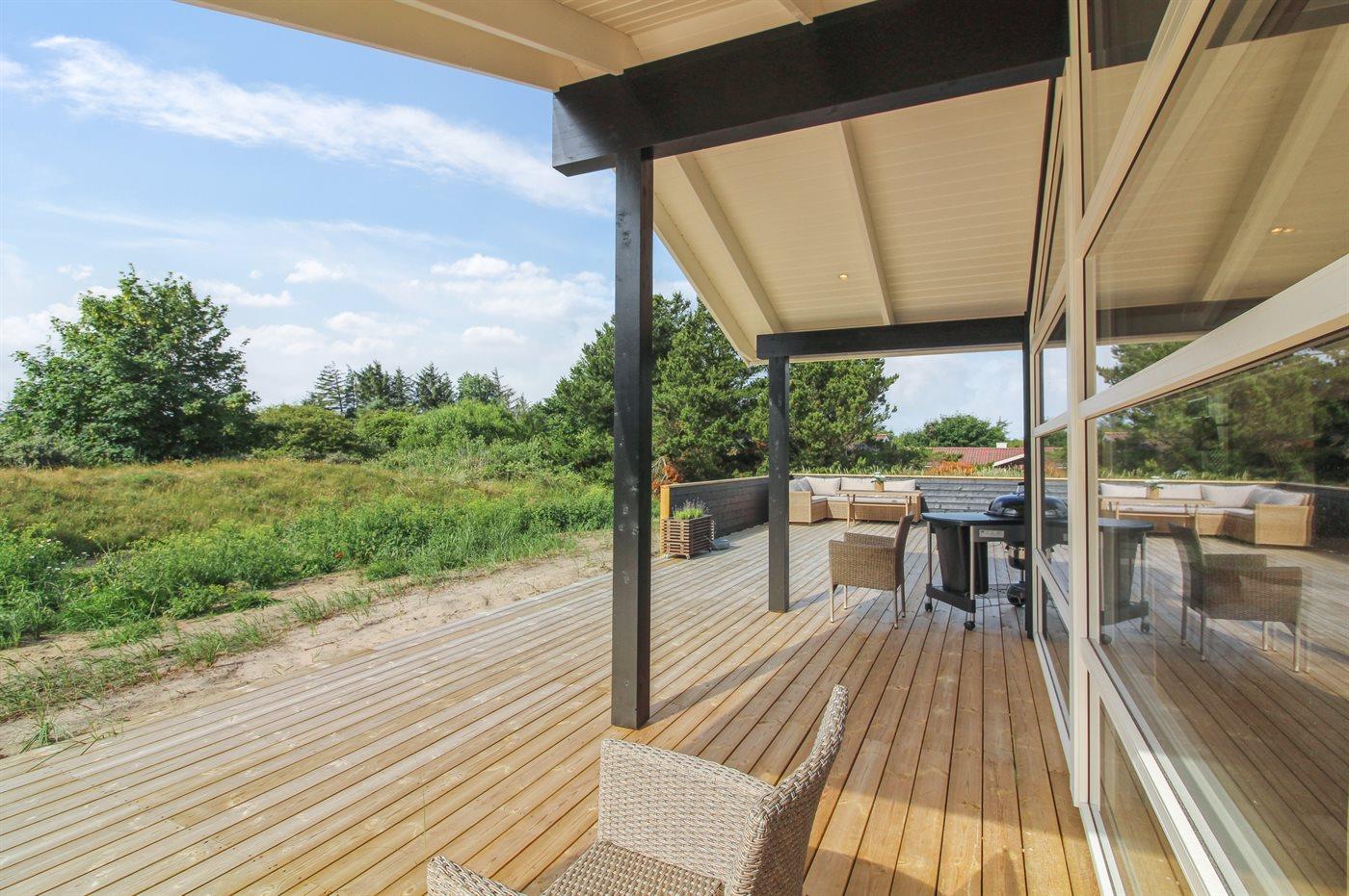 Ferieboligen er beliggende på en 2630 m² stor naturgrund. Der er 1160 m til havet. Nærmeste forretning er beliggende i en afstand af 900 m. Til ferieboligen hører åbent terrasseareal. Desuden er der overdækket terrasse. Der er redskabsrum. Grill til rådighed. Der er installeret stik til opladning af elbil. Med 11 kW ladeeffekt. Parkering ved ferieboligen.