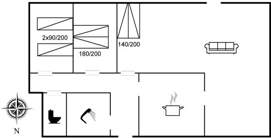 Der er i alt 2 soveværelser. Sovepladserne fordeler sig på: 6 sovepladser i dobbeltsenge. 2 af disse sovepladser befinder sig i stuen. Derudover er der 1 stk. barneseng.
