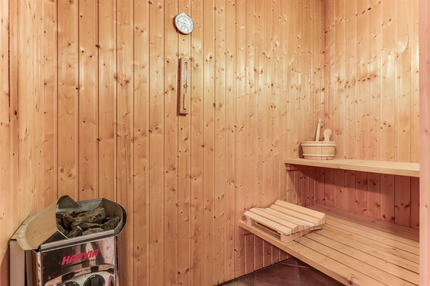 Der er 3 badeværelser med bruseniche og 3 toiletter. Der er gulvvarme på 3 badeværelser. I saunaen er der mulighed for afslapning.