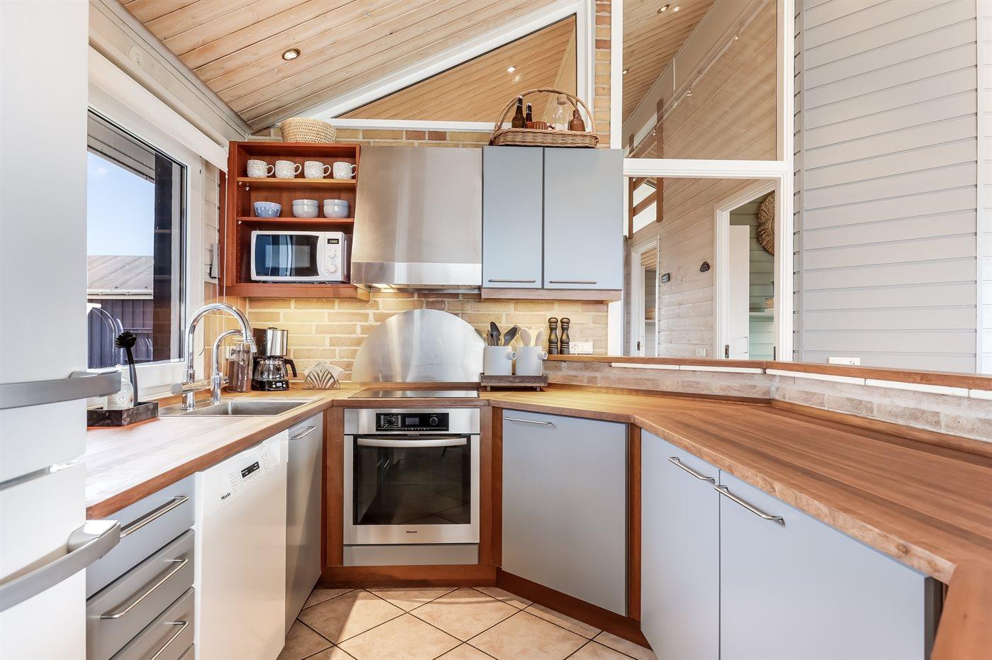 Køkkenet er udstyret med 1 køleskab. Der er 4 induktionskogeplader, varmluftovn, mikrobølgeovn samt opvaskemaskine.