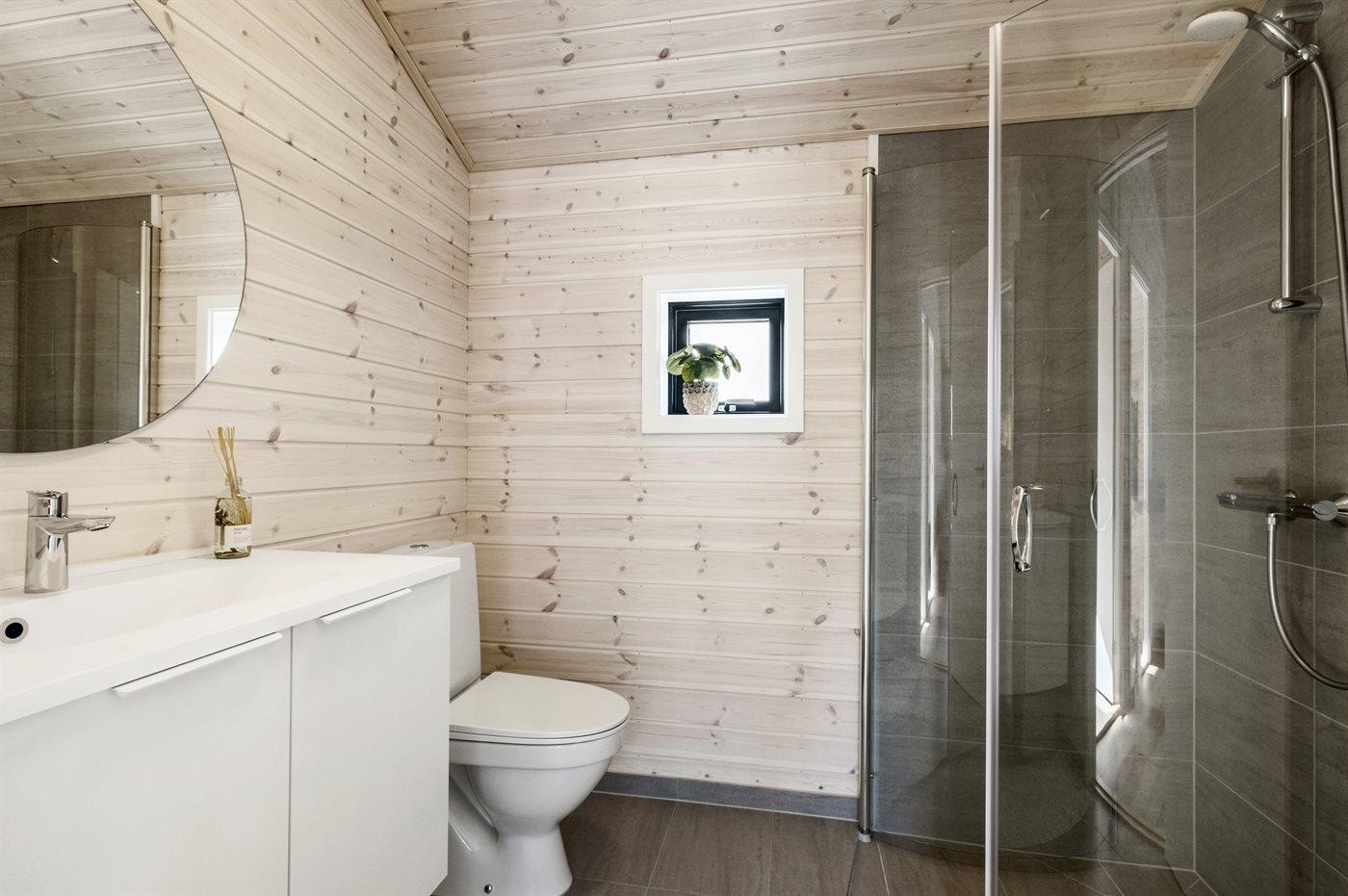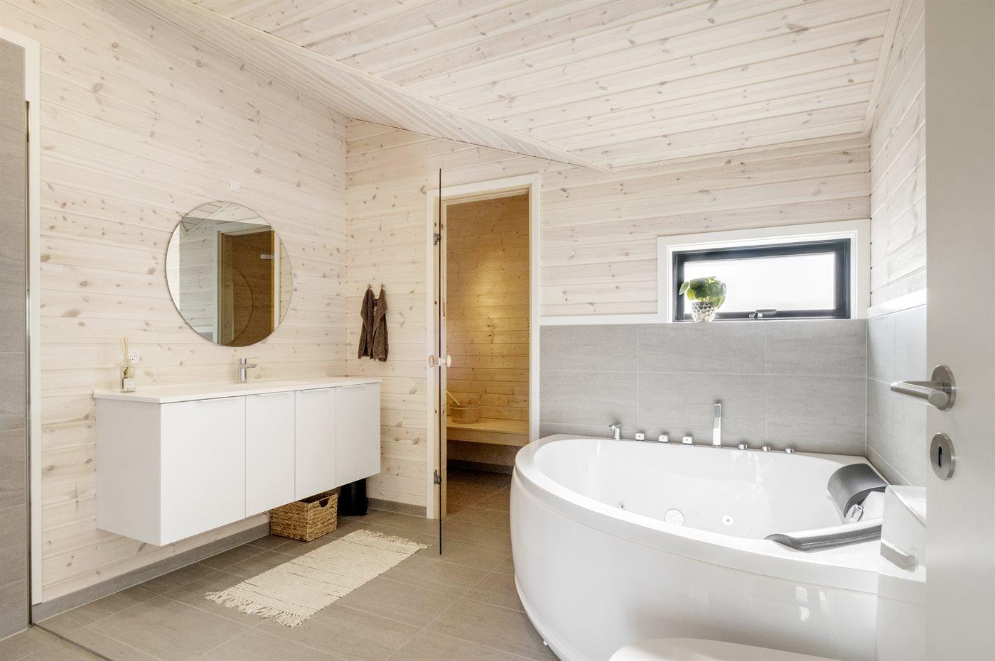 Der er 2 badeværelser med bruseniche og 2 toiletter. Der er gulvvarme på 2 badeværelser. I saunaen er der mulighed for afslapning.