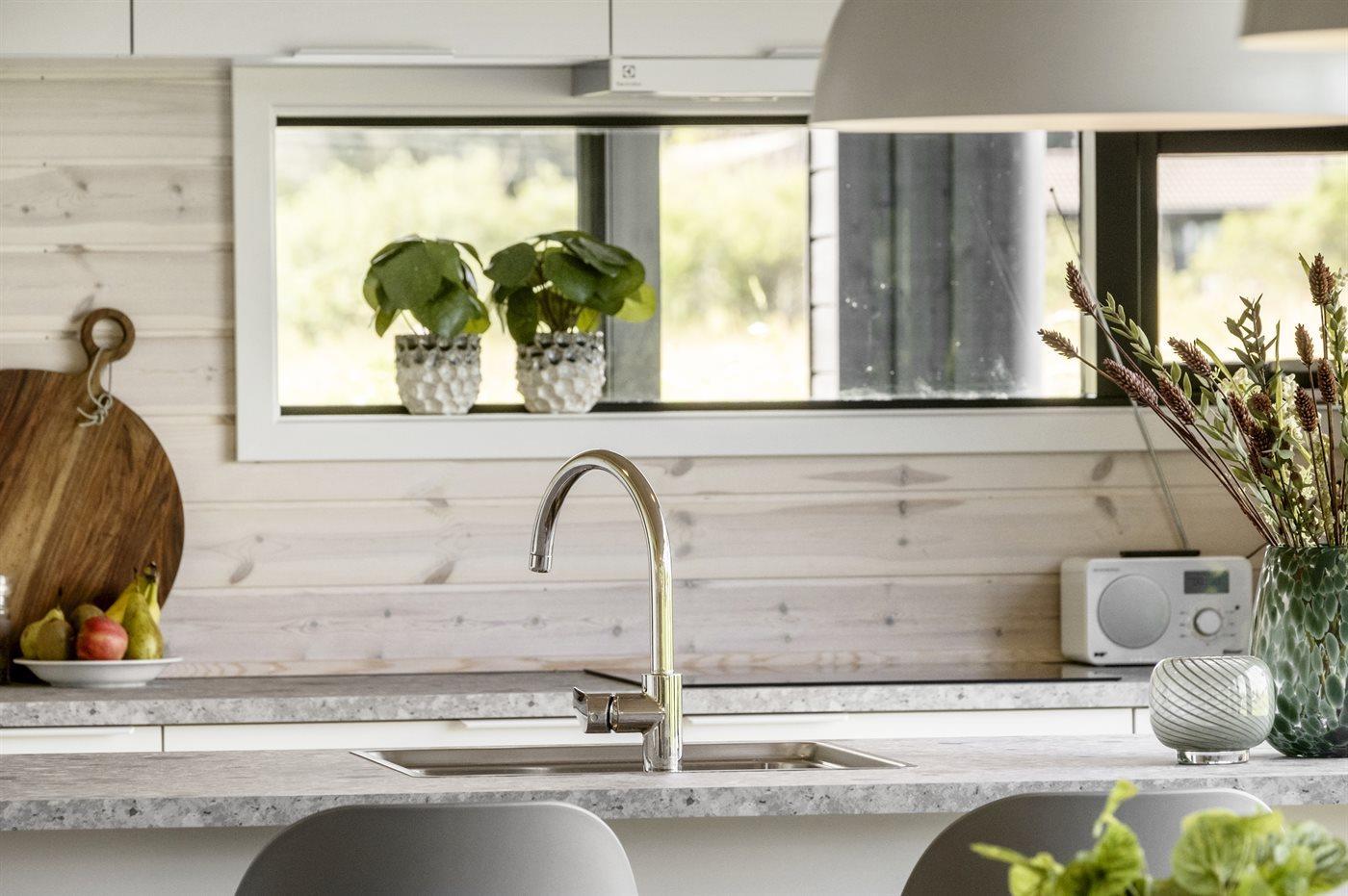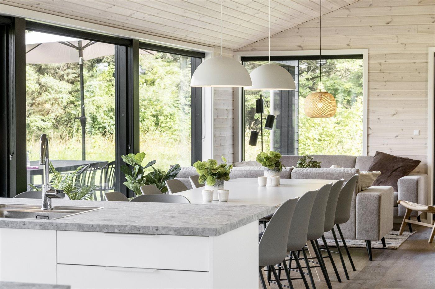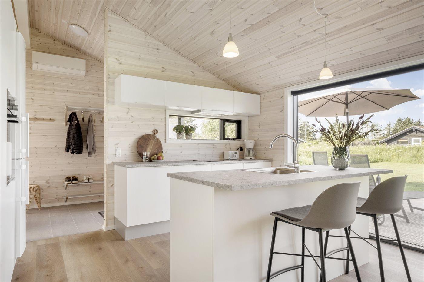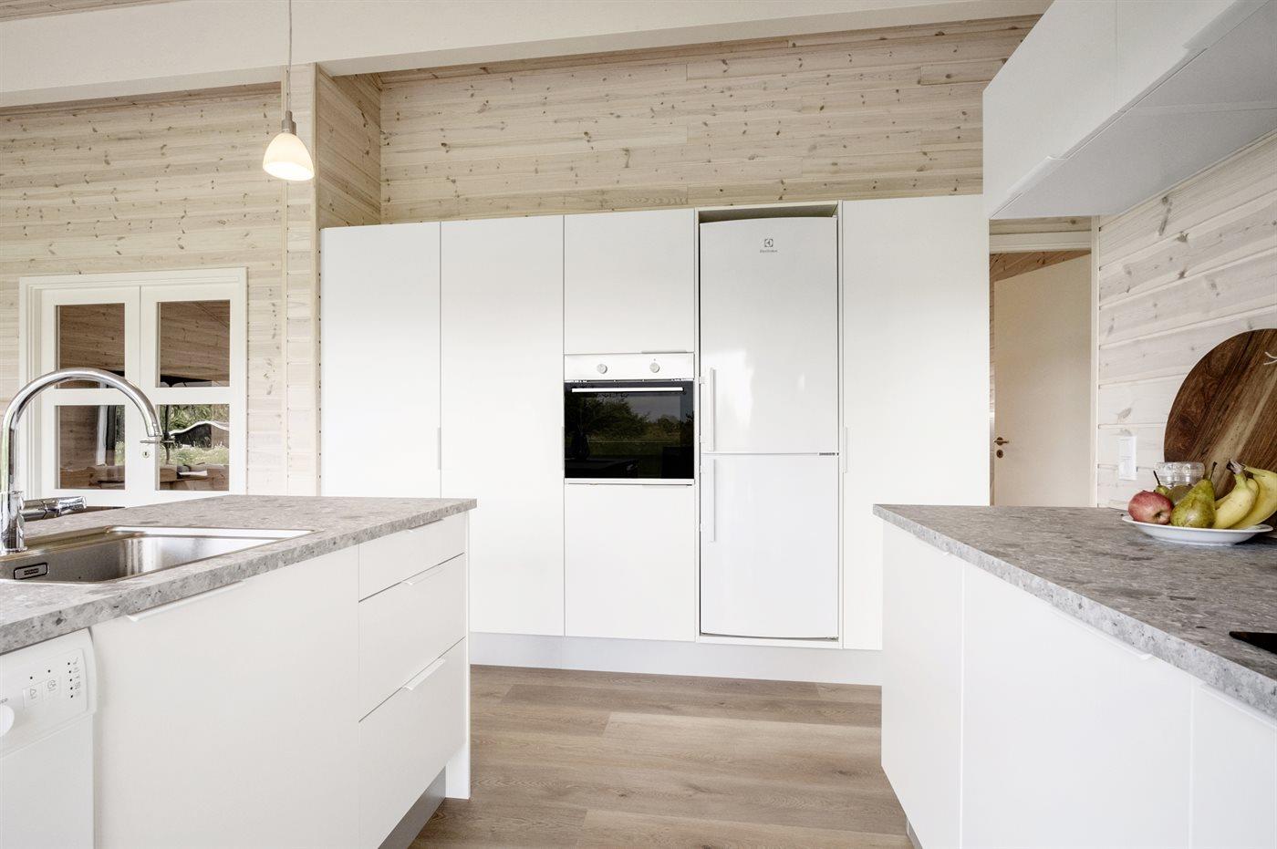 Køkkenet er udstyret med 1 køleskab. Der er 4 induktionskogeplader, varmluftovn, mikrobølgeovn samt opvaskemaskine.