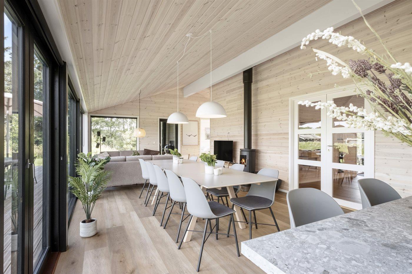 Moderne aktivitetssommerhus i Tornby med spa, sauna og aktivitetsrum nær strand og natur.