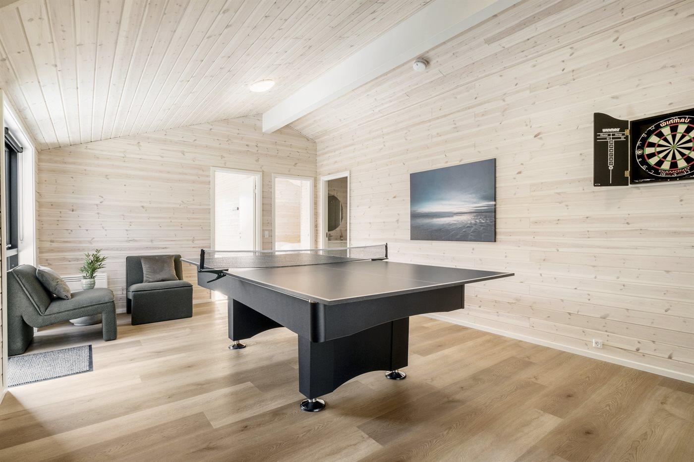 Sommerhusets indretning gør det velegnet til en ferie med familien, men også til flere par, som ønsker at tilbringe en dejlig ferie under et og samme tag. I aktivitetsrummet er poolbord, bordtennis, dart og TV tilgængelig.