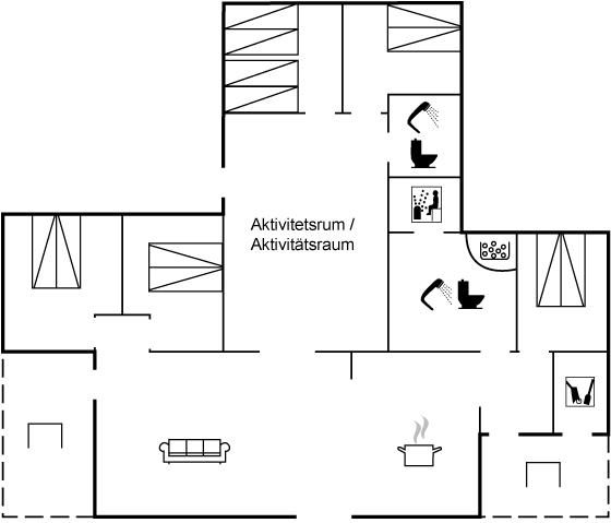 I aktivitetsrummet er der følgende udstyr: Poolbord. Bordtennis. Dart.
