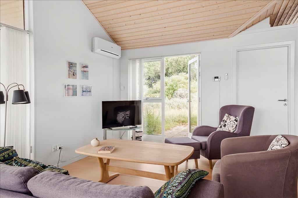 Der er helt klart også mulighed for at koble af og få ny energi, når I tilbringer tiden inden døre i sommerhuset. Det er indrettet med mange lækre detaljer – inklusiv spabad på et af de to badeværelser, brændeovn i stuen og et velindrettet køkken, hvor I kan hygge jer med at lave mad sammen. Køkken og stue ligger samlet midt i huset, og det dejlige opholdsrum er udstyret med store vinduer, der giver et godt lysindfald og fri udsigt over det åbne sommerhusområde. Husets tre soveværelser, der alle er indrettet med dobbeltseng, har også store vinduespartier med havedør til terrassen.