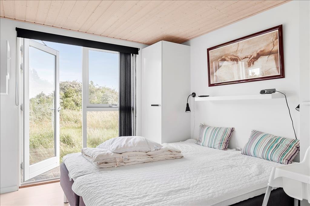Sommerhuset ligger for enden af en lukket vej, og herfra er der ikke langt til Tornby Strand, så turen kan sagtens foregå til fods gennem det smukke kystlandskab. Det er et skønt sted at bade, og hvis vejret lægger mere op til at pakke sig ind i vindjakke og halstørklæde, føles det også velgørende at gå lange ture langs Vesterhavet. Vil I på en familievenlig udflugt, er der særdeles kort afstand til Fun-Park Hirtshals, hvor I kan lege på legepladsen og se på de mange spændende dyr. Det er også oplagt at køre ind til Hirtshals by, uanset om målet er at besøge fyret, gå på restaurant og shoppe eller opleve stemningen på byens imponerende store havn.