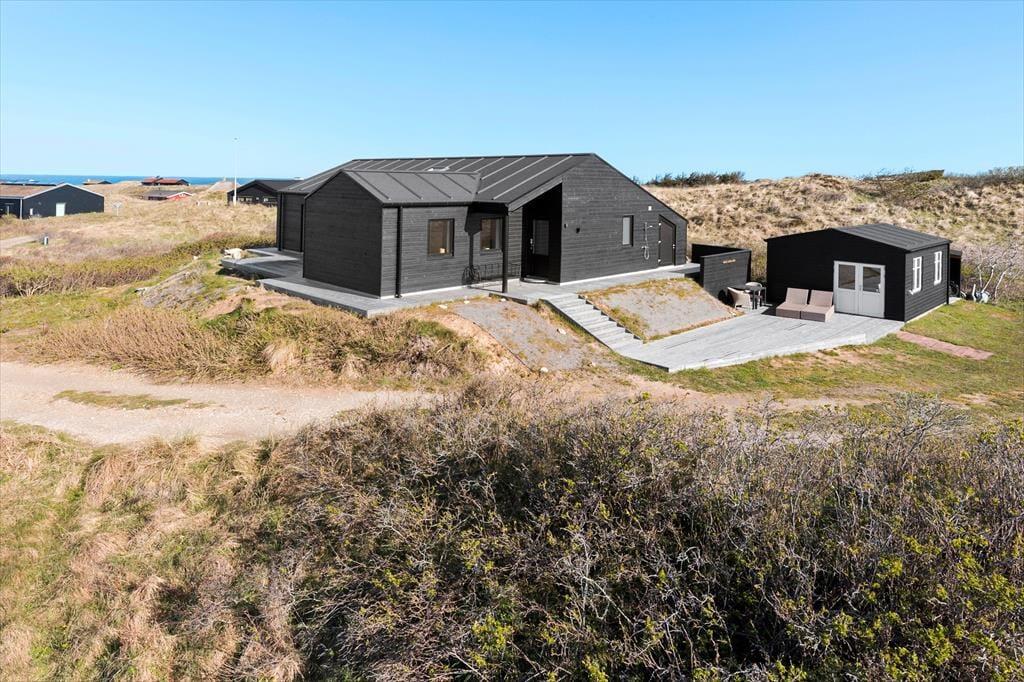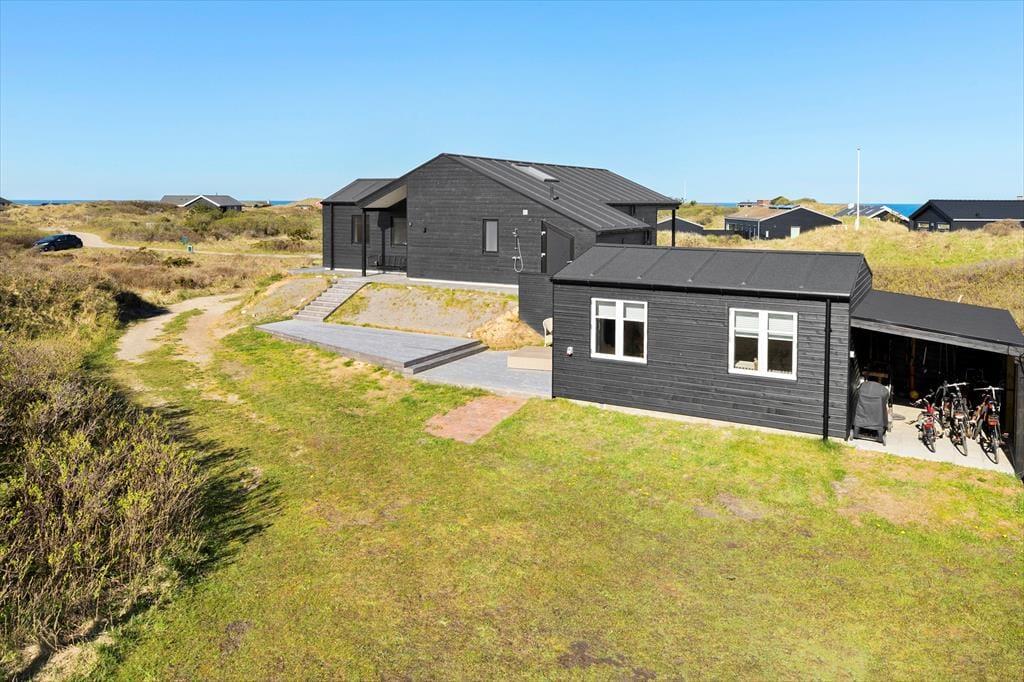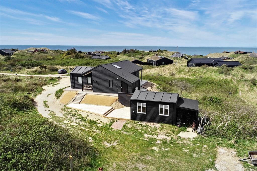 Der er lagt op til en rigtig kvalitetsferie i dette moderne og velindrettede sommerhus på Krageklit 30 i Tornby. Inden døre bliver I blandt andet forkælet med et lækkert spabad og et veludstyret køkken, og når I slapper af på terrasserne, føles det skønt at være omgivet af bløde klitter og duftende hybenbuske – og så har I endda udsigt til Vesterhavet, der venter bare 500 meter væk.