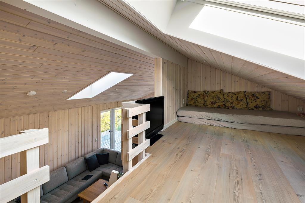 Også inde fra husets lyse rum kan I se vandet og nyde nærheden til det kuperede kystlandskab. I opholdsafdelingen sørger de store vinduespartier desuden for et skønt lysindfald, så I rigtigt kan følge med i solens bevægelse og farveskiftene i løbet af dagen. Det moderne indrettede køkken er integreret med stuen, så I kan holde hyggesnakken i gang, selvom nogle i familien laver mad og andre sidder godt placeret ved spisebordet eller i sofaen. Er der nogen, der trænger til en tilbagelænet stund i stilhed, er det skønt med et varmt bad, og derfor er det heldigt, at der står et spabad på det ene af husets to flotte badeværelser. Soveværelser er der tre af, og derudover har I adgang til en hems og et anneks, hvis I vil have flere fordelingsmuligheder, når det er sengetid.