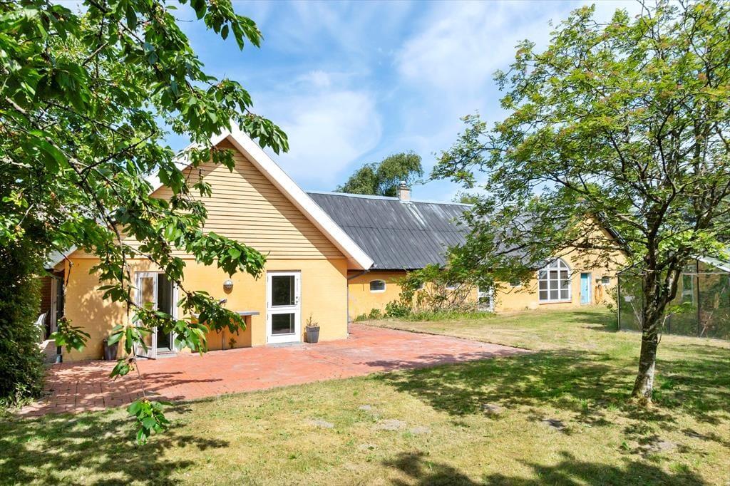 Både dyr og folk kan se frem til at tilbringe dagene på sommerhusets naturskønne jorder. Mellem ejendommens længer finder du et grønt og ugeneret gårdmiljø, hvor du kan tage kaffen med ud i solen. Der er også andre terrasser og sågar et bålsted i den frodige have, mens de tilhørende marker breder sig rundt om gården og langt mod vest. Der er mulighed for at tage helt op til fem hunde med, og mon ikke de firbenede familiemedlemmer vil elske at lege og slappe i de fredfyldte omgivelser. Jeres heste kan gå pågræs på en stor, nyindhegnet mark tæt på gården – og I har for øvrigt god plads til at parkere trailere og have rideudstyr med, hvis det er aktuelt.
