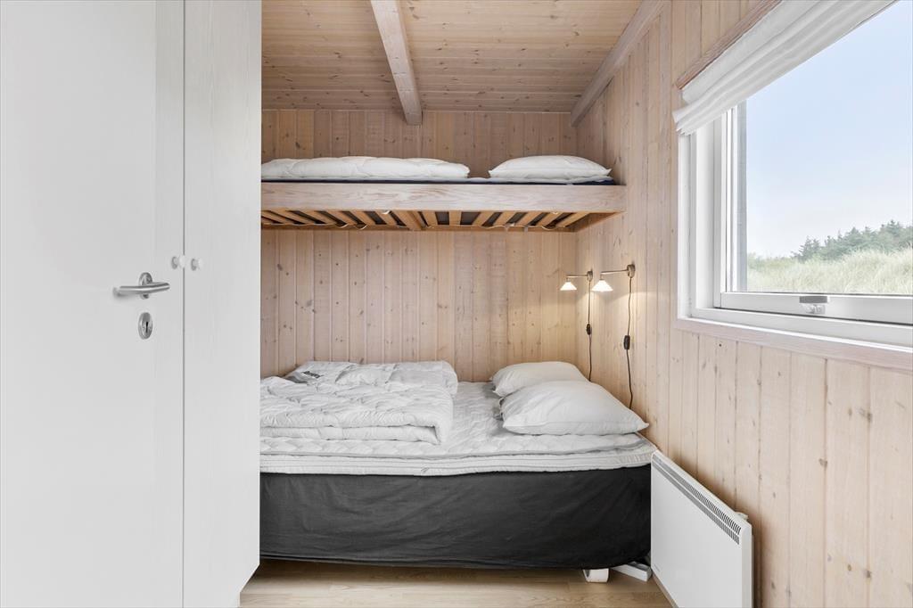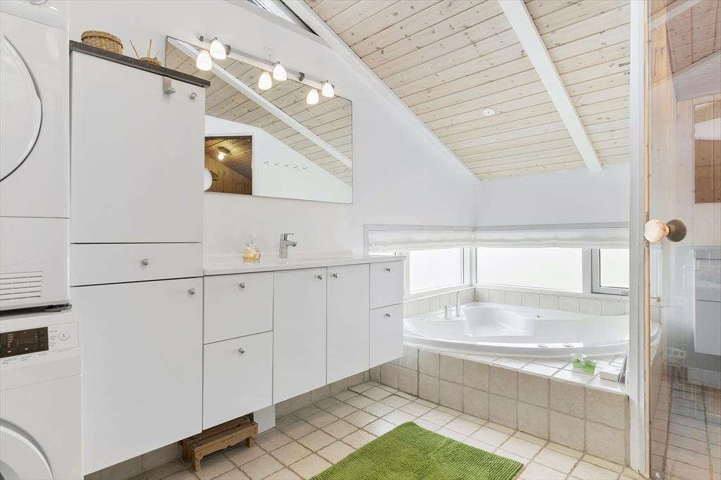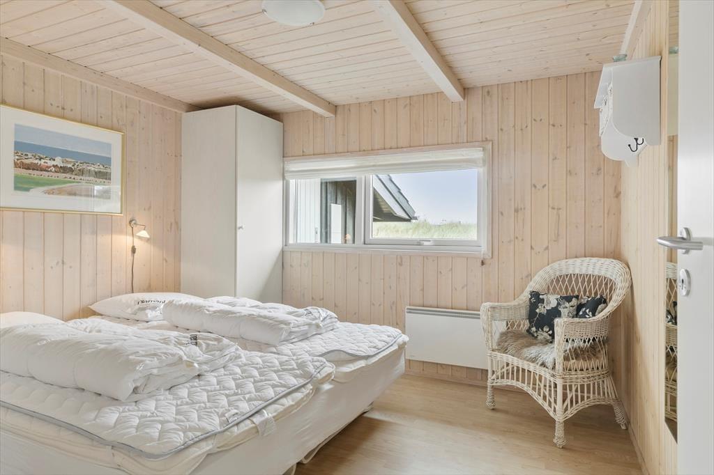 Atmosfæren er lys og indbydende inde døre i det 96 m2 store sommerhus, der er opført i 2004. Hvis I virkelig trænger til at finde ro og få ny energi, er der herligt at bo med både spabad og sauna. Begge dele findes på badeværelset, der også byder på en bruseniche samt vaskemaskine og tørretumbler. På de tre soveværelser kan I se frem til at sove godt og længe, og når I vil hygge jer med terningespil, filmaftener eller lækre måltider, er stuen det helt rette sted at være. Stuen ligger i åben forbindelse med køkkenet, der har opvaskemaskine og andre ordenlige hvidevarer, og en stige fører op til en hems, hvor børnene kan lege eller læse tegneserier på madrasserne.