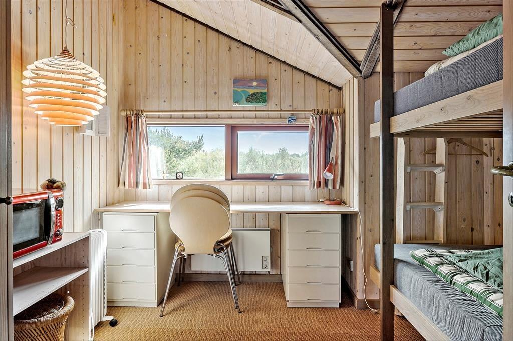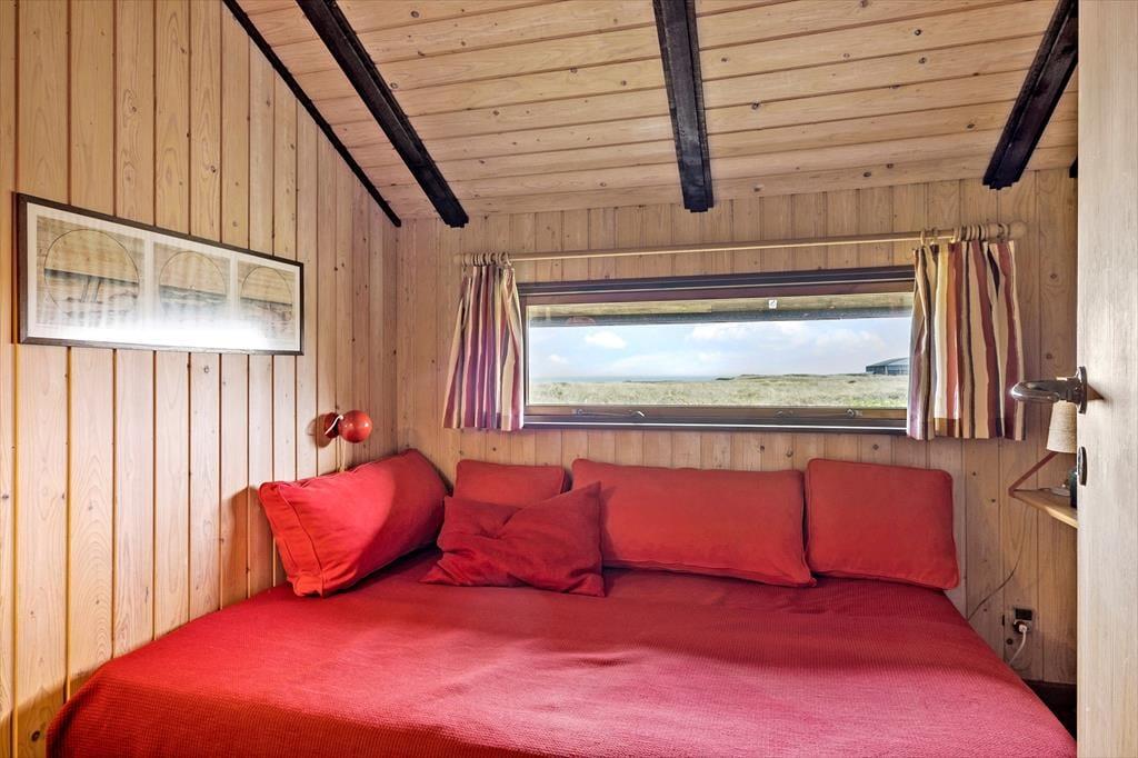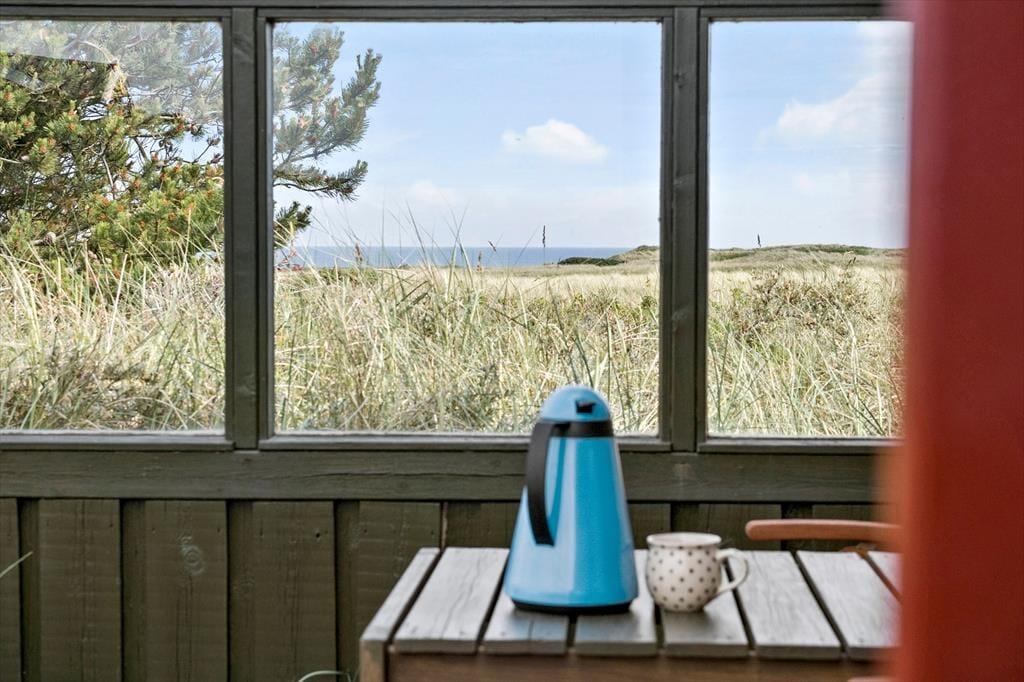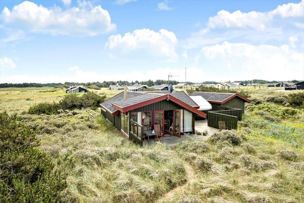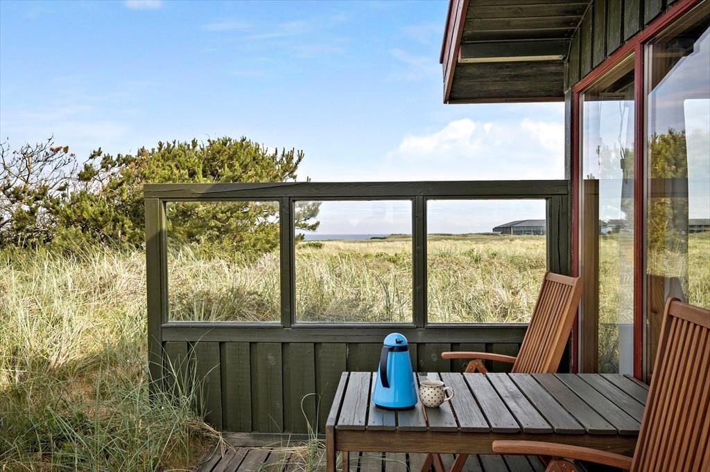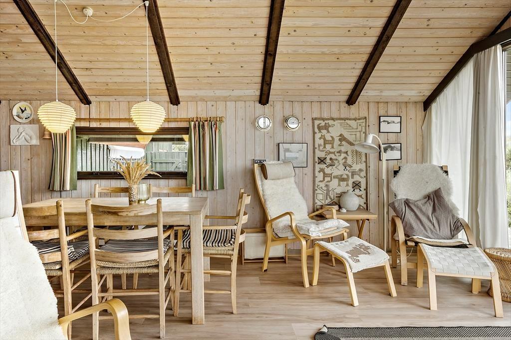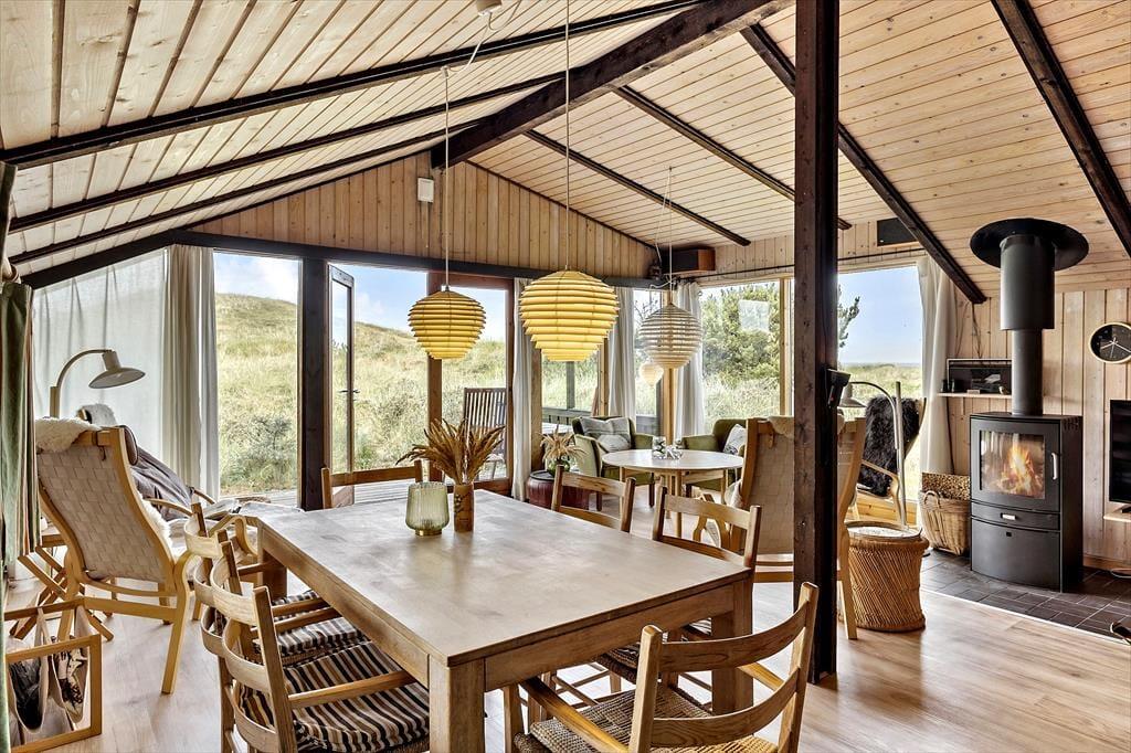Trækkene på sommerhuset på Kranken 6 smyger sig ind i den omkringliggende natur med en lethed og en følelse af tidløshed, der straks skaber en atmosfære af ro og fred. Det ældre træhus, omfavnet af klitternes blide bølger, byder på en panoramaudsigt over det glitrende hav, der ligger blot 300 meter derfra.