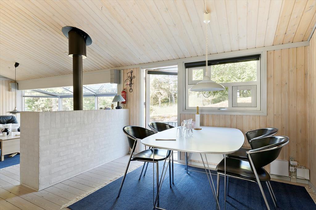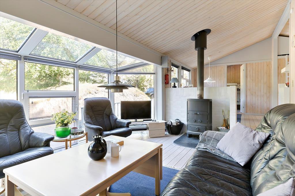 Atmosfæren er lys og hyggelig inden døre i huset, der har en fornuftig rumfordeling distribueret på 76 m2. I stuen har solen fri passage gennem det store, vestvendte vinduesparti, og en brændeovn står klar til at sprede varme og hyggestemning. Der er åben passage og blot et par trin fra stuen til køkken-alrummet, der har en god spiseplads og en funktionel arbejdsstation, når I vil kokkerere. De tre soveværelser ligger tilpas spredt i huset, så I har fornemmelsen af privatliv, og på det rummelige badeværelse er der bruseniche og kombivaskemaskine.