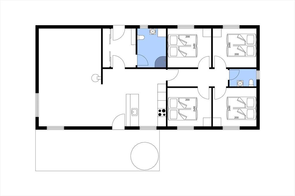 Indendørs venter dig en indretning, der både er moderne, stilren og utrolig imødekommende. Det åbne opholdsrum med køkken og stue i ét inviterer til samvær og nærvær, uanset om du laver mad, spiller spil eller bare lader roen falde over dig i sofaen. De store vinduer sørger for et skønt lysindfald, og med de lyse materialer og moderne møbler føles huset både rummeligt og rart at opholde sig i – også på de dage, hvor vinden rusker udenfor. Der er tænkt på detaljerne, og man mærker tydeligt, at funktionalitet og æstetik går hånd i hånd her. Huset har plads til både familie og venner, og da det er tilladt at medbringe hund, behøver familiens firbenede medlem heller ikke blive hjemme. Her er der plads til alle.