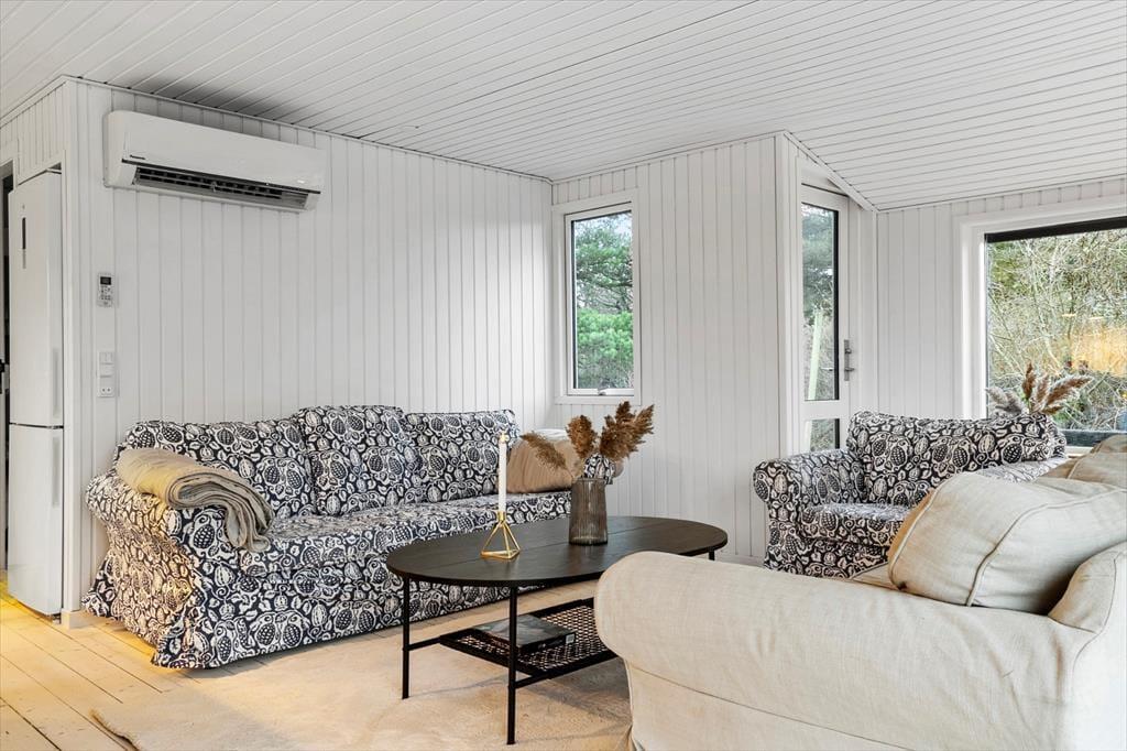 Indenfor mødes du af et lyst og indbydende sommerhus, hvor indretningen er holdt i en smagfuld og harmonisk sommerhusstil. De afstemte farver og det hyggelige udtryk skaber en behagelig atmosfære, der indbyder til afslapning fra første øjeblik. Her er der tænkt på både komfort og stemning, så det er nemt at føle sig hjemme – hvad enten ferien står på rolig fordybelse eller samvær med familie og venner. Opholdsrummet fungerer som husets naturlige samlingspunkt, hvor lyset strømmer ind, og hvor der er god plads til fælles feriestunder med samtaler, spil og afslapning. Når dagen går på hæld, kan du læne dig tilbage og nyde stilheden, mens dagens oplevelser falder på plads. Sommerhuset egner sig perfekt til en mindre familie eller et par, der ønsker en afslappet ferie i rolige og æstetiske omgivelser med plads til at være sammen – og til at trække sig tilbage, når behovet melder sig.