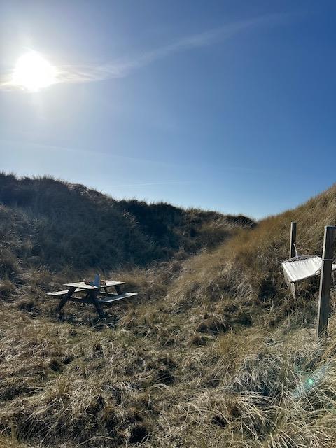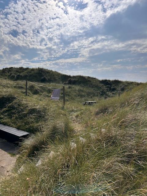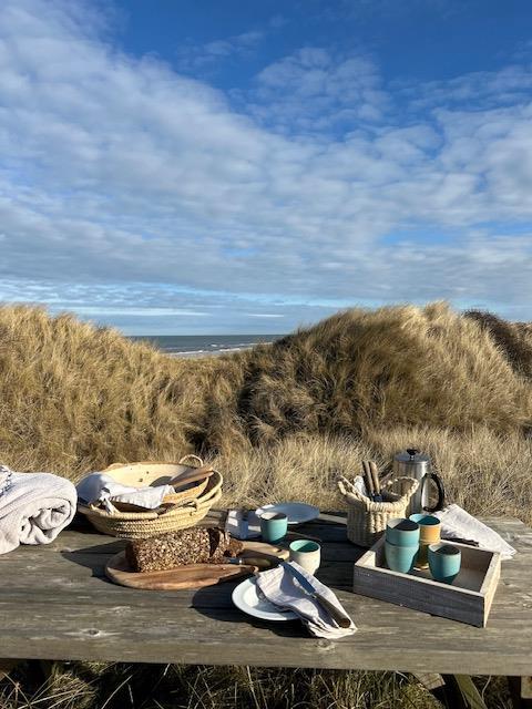 Stå op, slå morgenkåben om kroppen, åben hoveddøren og træd direkte ud i sandet og klitterne. Huset ligger smukt i en lavning i klitterne, beskyttet mod vinden og badet i sollys. Udenfor kan du nyde din morgenkaffe ved træbordet mens du ser bølgerne rulle ind over Vesterhavet. Senere kan du nyde en god bog i i hængekøjen med lyden fra bølgernes brusen i baggrunden.
