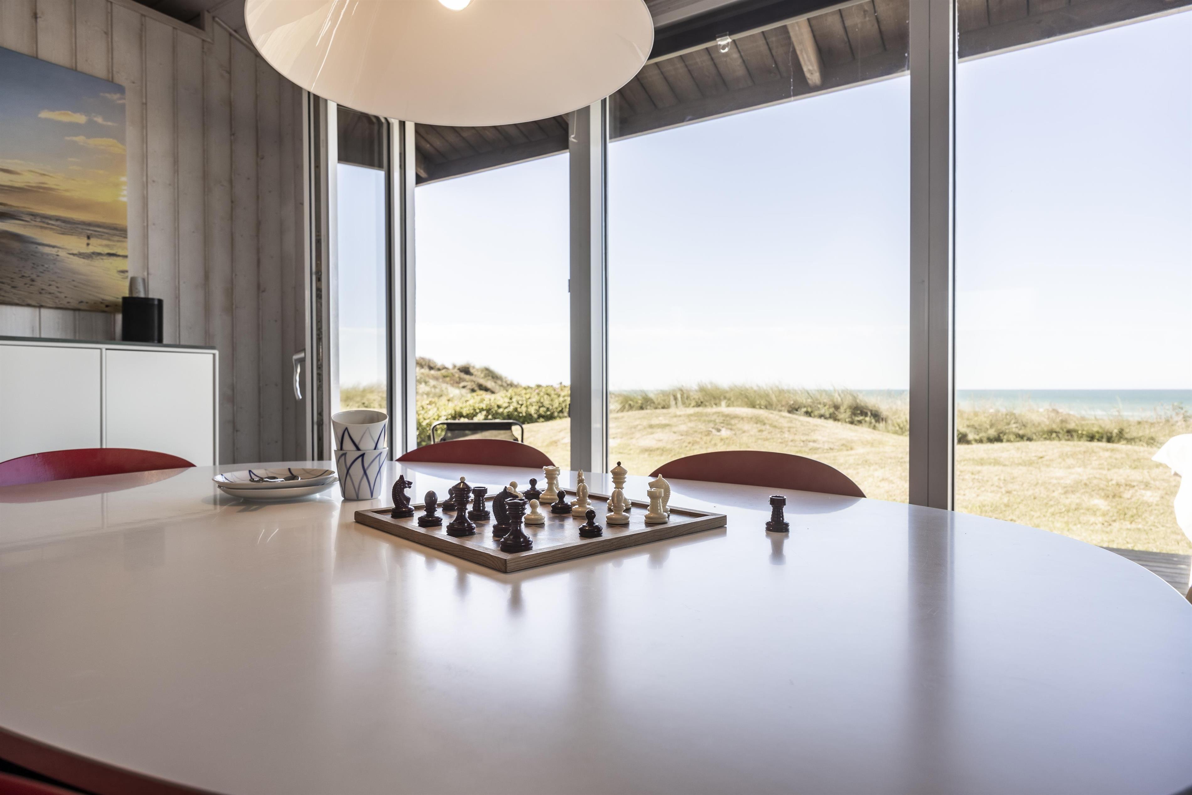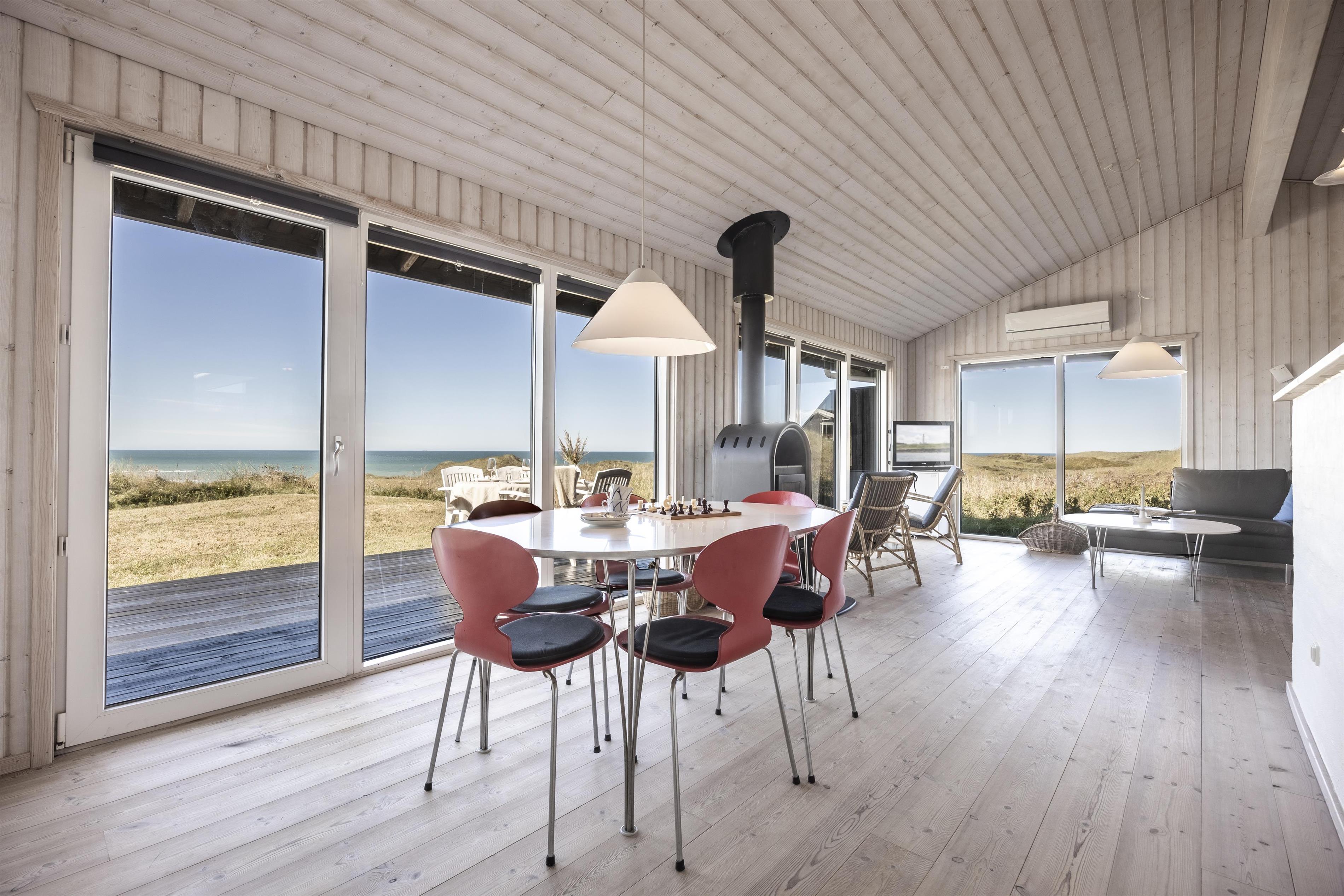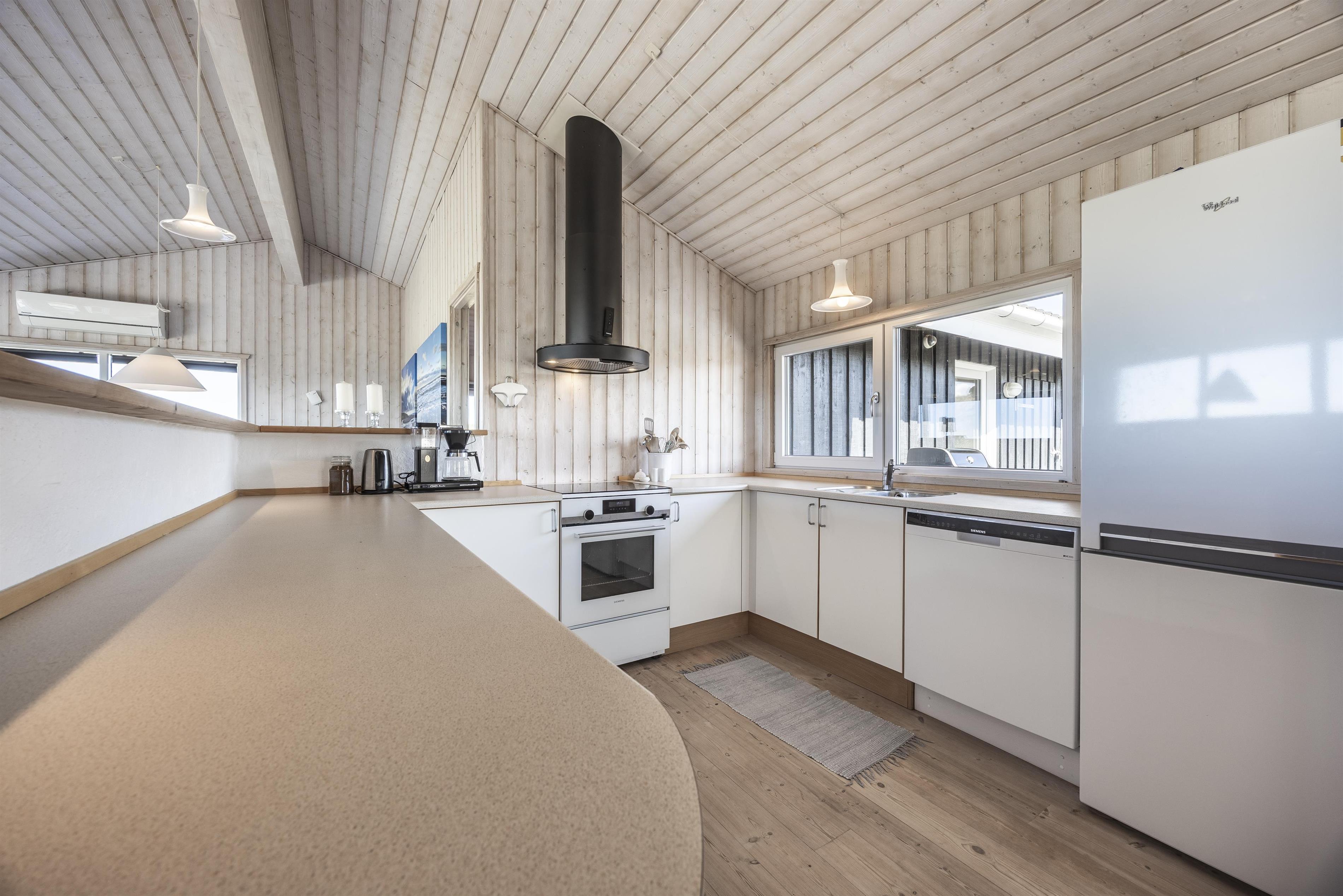Feriehuset er lyst, indbydende og rummeligt – et ideelt valg til en familieferie ved kysten. Hjertet af huset er det store køkken, der rummer alt, hvad I har brug for til at tilberede feriens måltider. Herfra er der åben forbindelse til den hyggelige stue, hvor de store vinduespartier inviterer Vesterhavet helt ind i rummet.