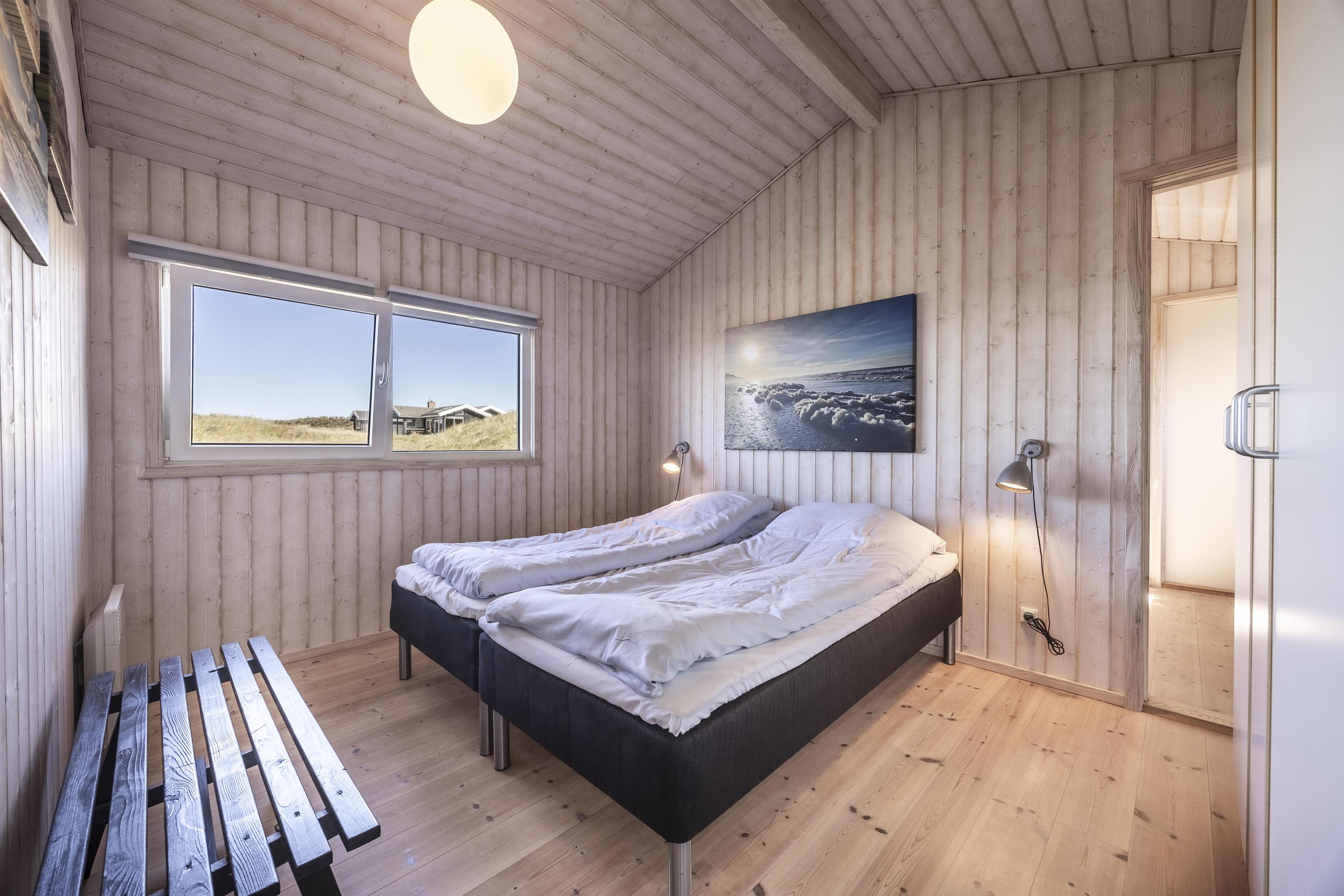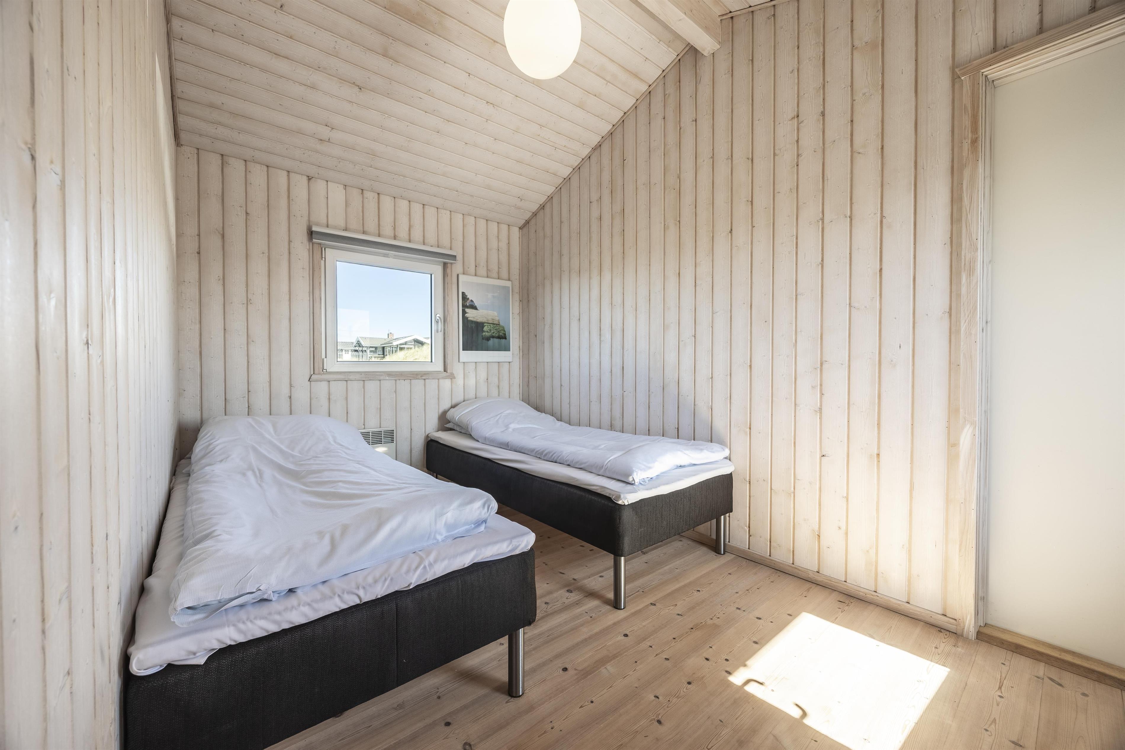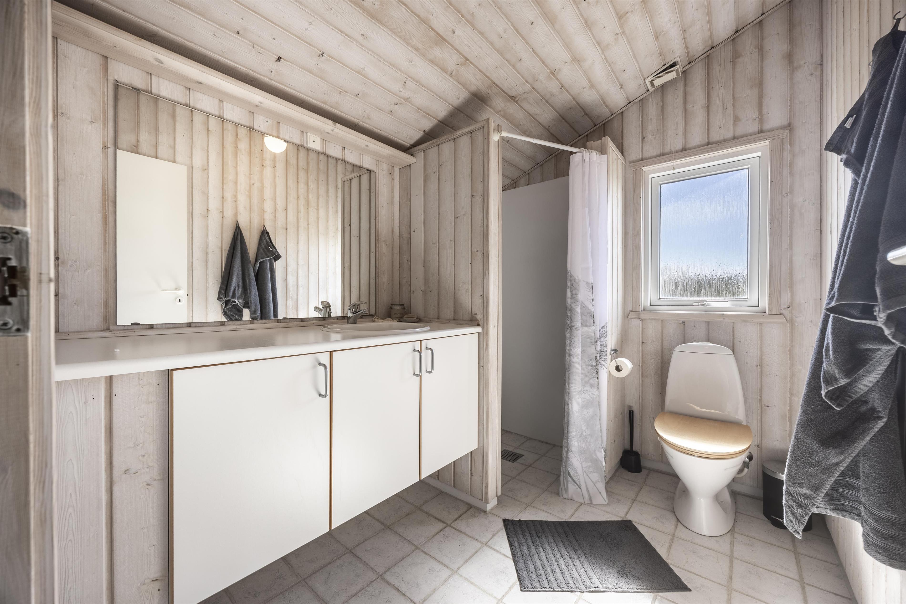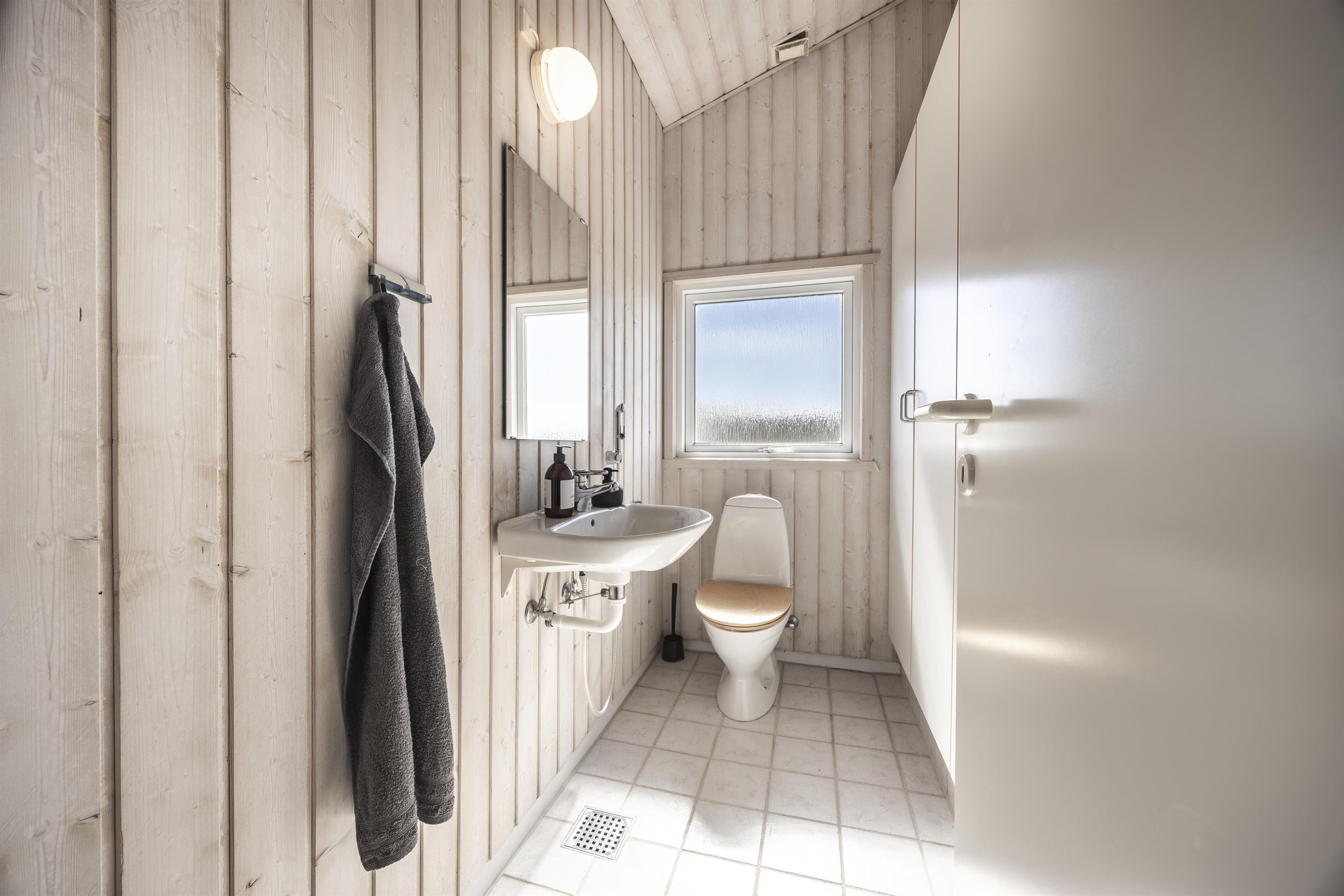 Feriehuset rummer tre skønne soveværelser - det ene fungerer som gennemgangsrum til værelset med to enkeltsenge. Derudover findes et rummeligt badeværelse samt et gæstetoilet, begge med komfortabel gulvvarme.