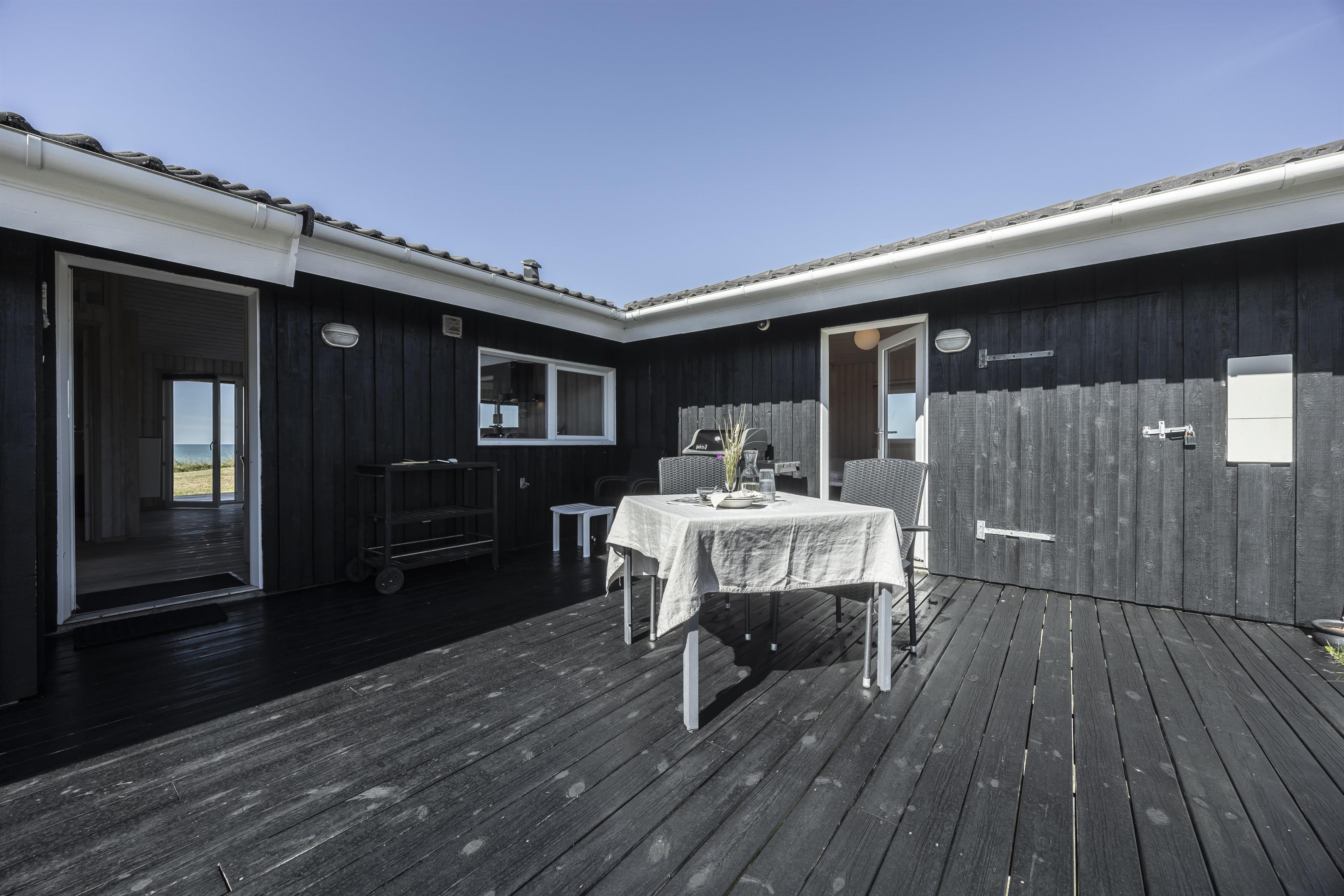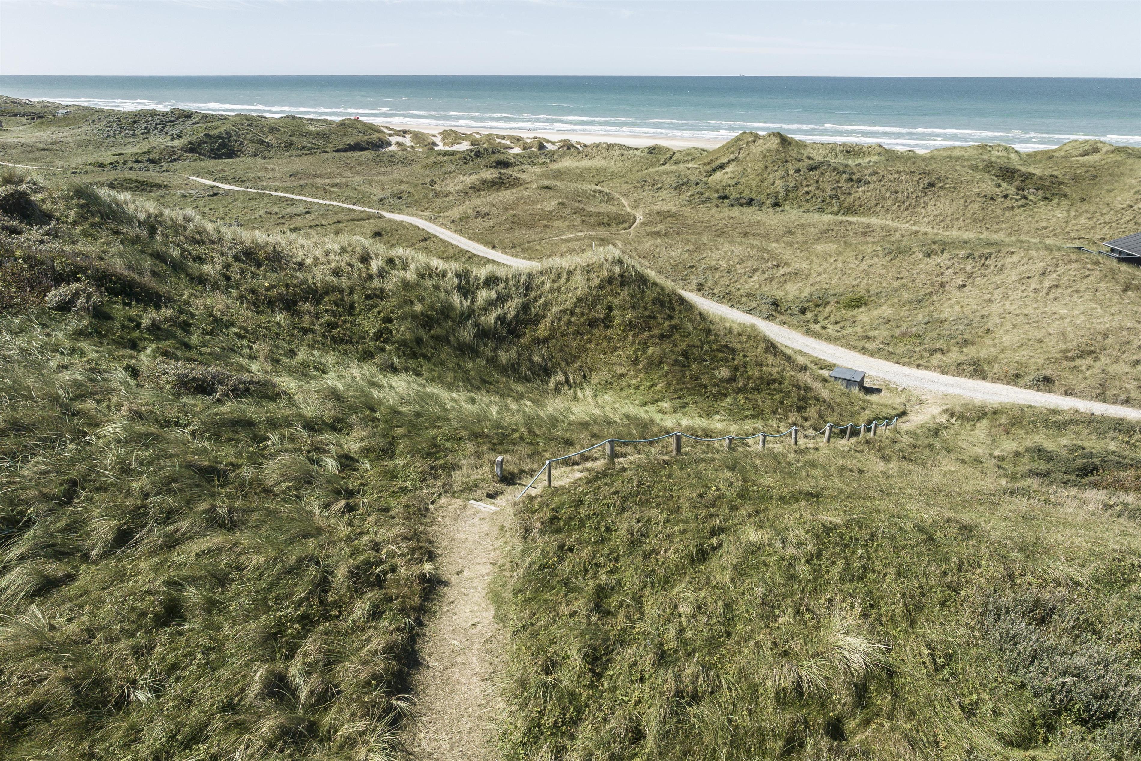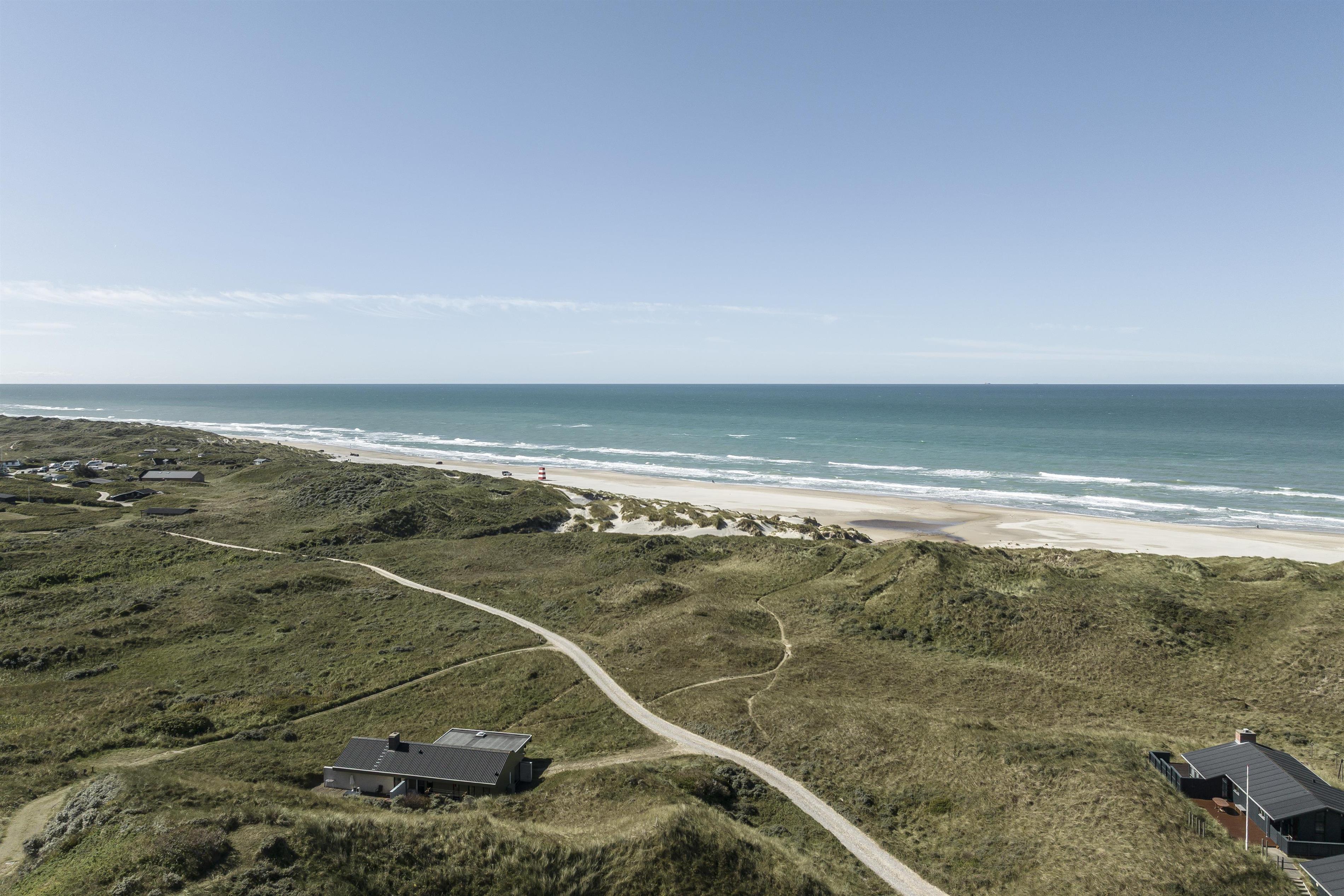 Udenfor finder I flere skønne terrasser, hvor I kan nyde solen hele dagen. Terrassen ud mod havet er som skabt til lange sommeraftener med de mest imponerende, farverige solnedgange over Vesterhavet. Foran huset er der en lille græsplæne, hvor børnene kan lege frit, mens de voksne slapper af. Lige ved siden af huset går en badesti direkte ned til stranden – tættere på havet kommer I ikke.