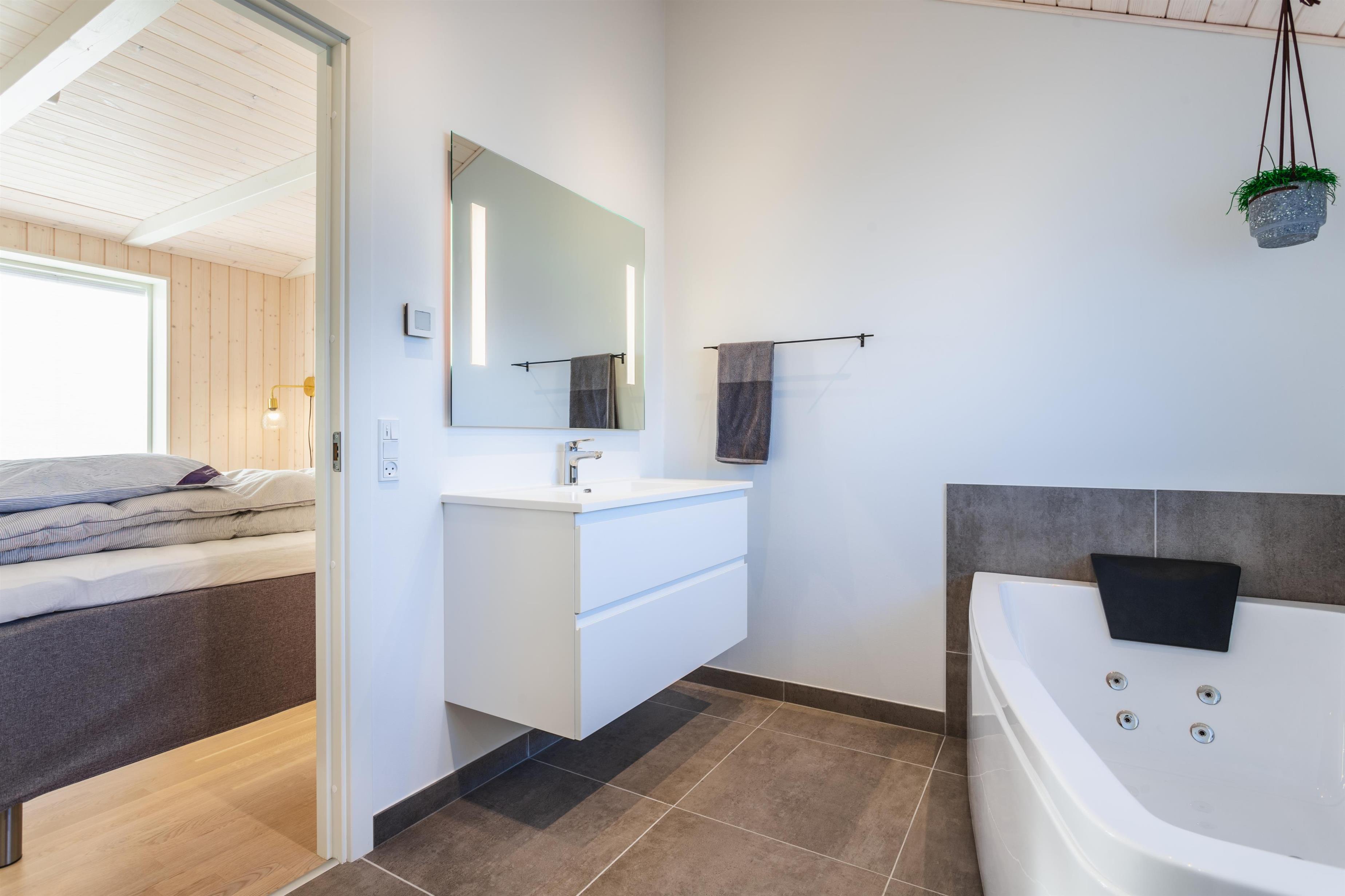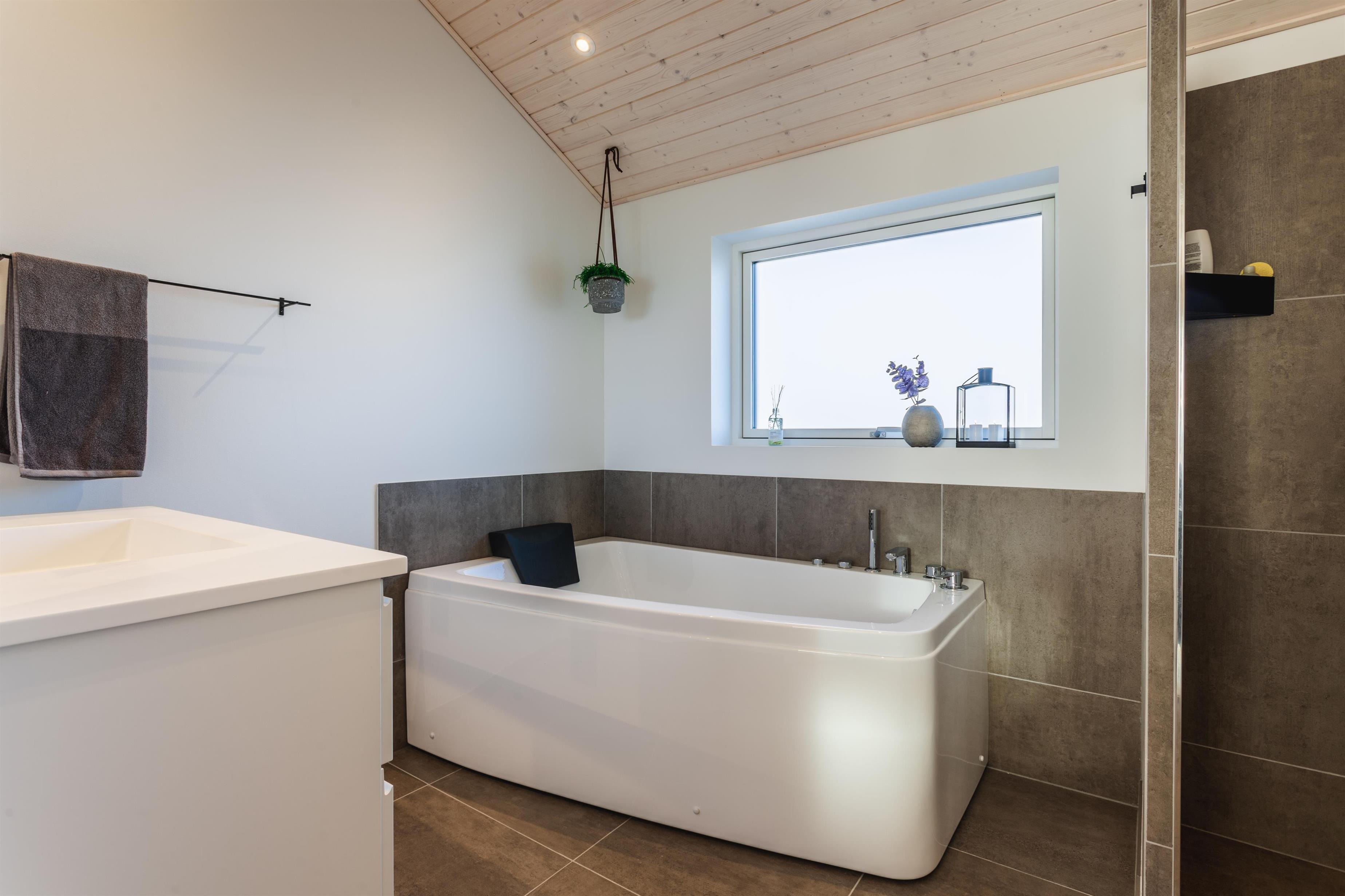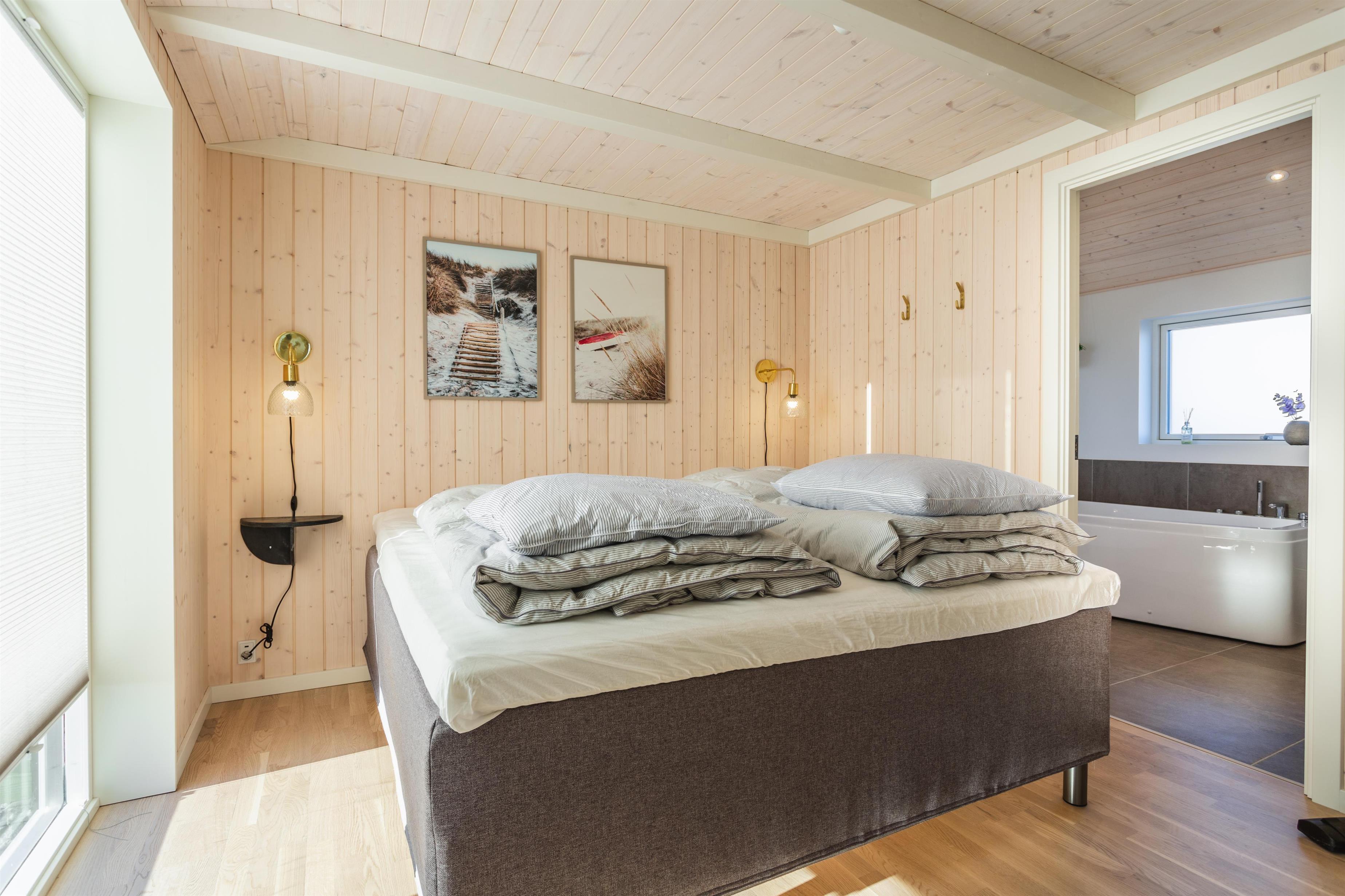Dette indbydende feriehus har det hele: Høj kvalitet, god beliggenhed, smukke omgivelser og gode, velfungerende faciliteter. Vi tør godt placere dette feriehus i vores liebhaverklasse. Det nyere sommerhus er indrettet med stilfulde og moderne møbler, der sikrer både komfort og en behagelig atmosfære. Det store, veludstyrede køkken ligger i åben forbindelse med stuen, hvorfra man kan nyde den fantastiske udsigt til området og den omkringliggende natur. Nyd den knitrende ild fra brændeovnen, der tilføjer ekstra hygge, og det imponerende lysindfald fra de store vinduespartier der strækker sig fra væg til væg. Huset rummer tre store soverum, alle med komfortable dobbeltsenge, samt to rummelige badeværelser, hvoraf det ene er udstyret med en afslappende spa.