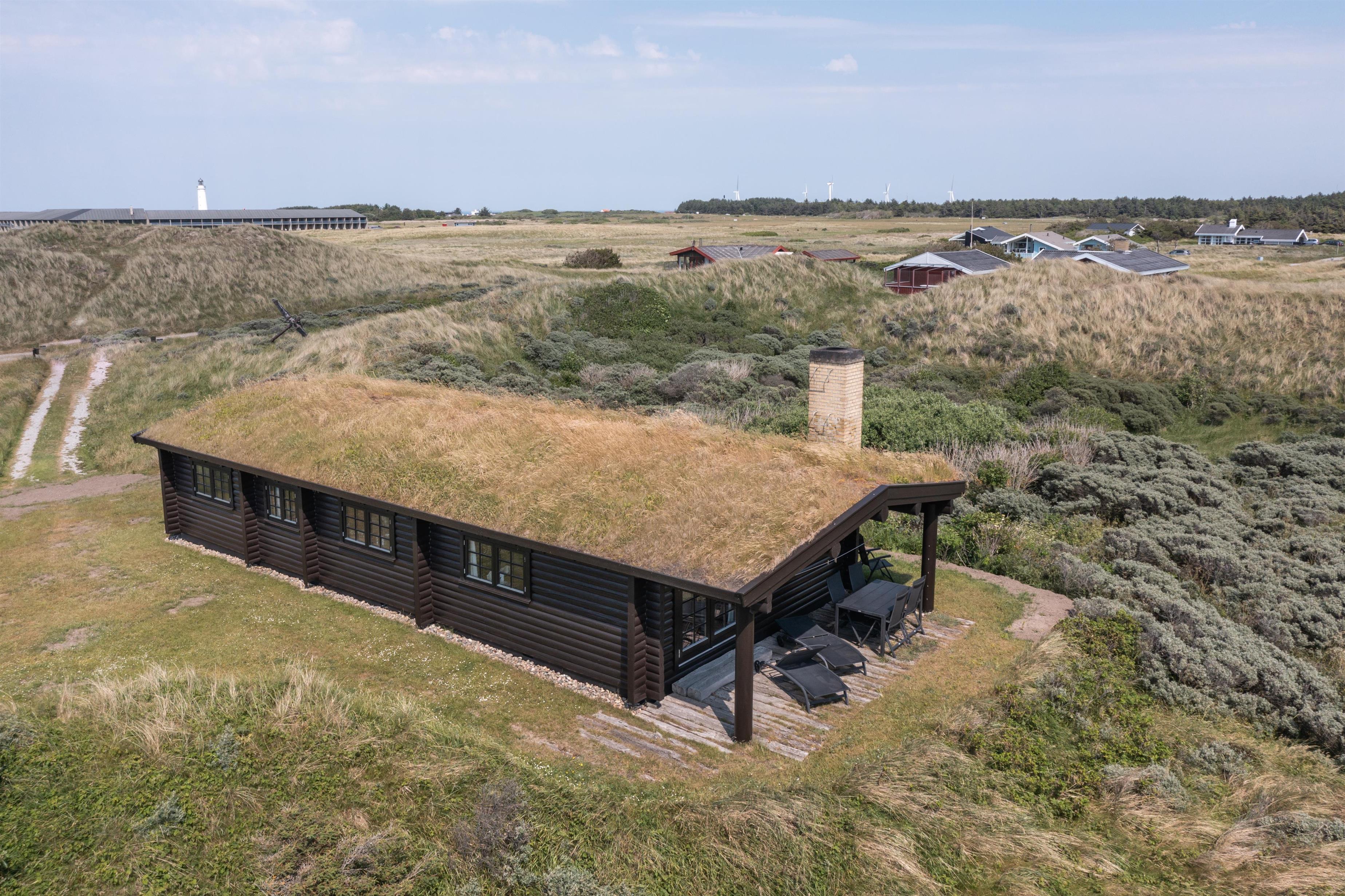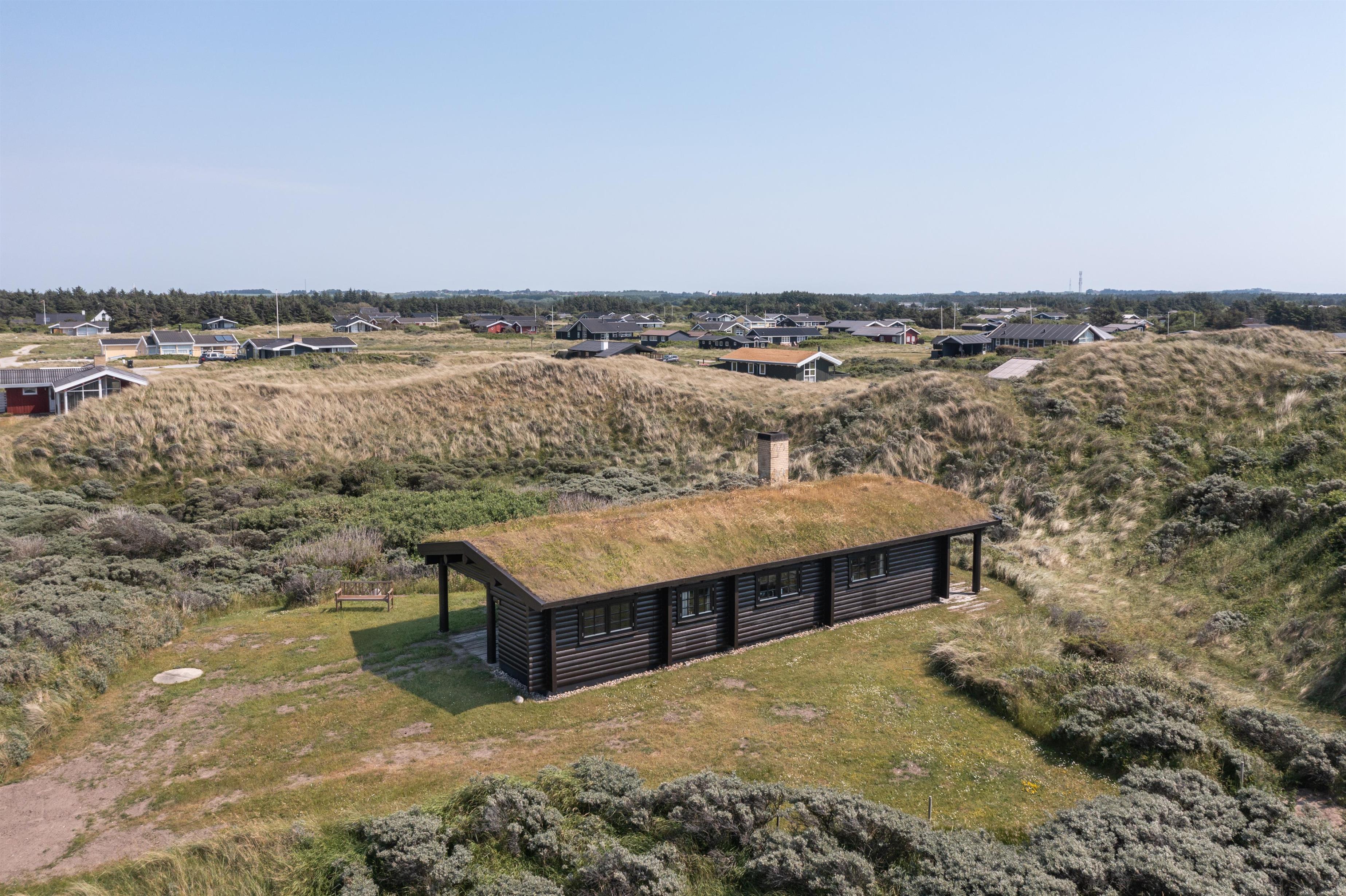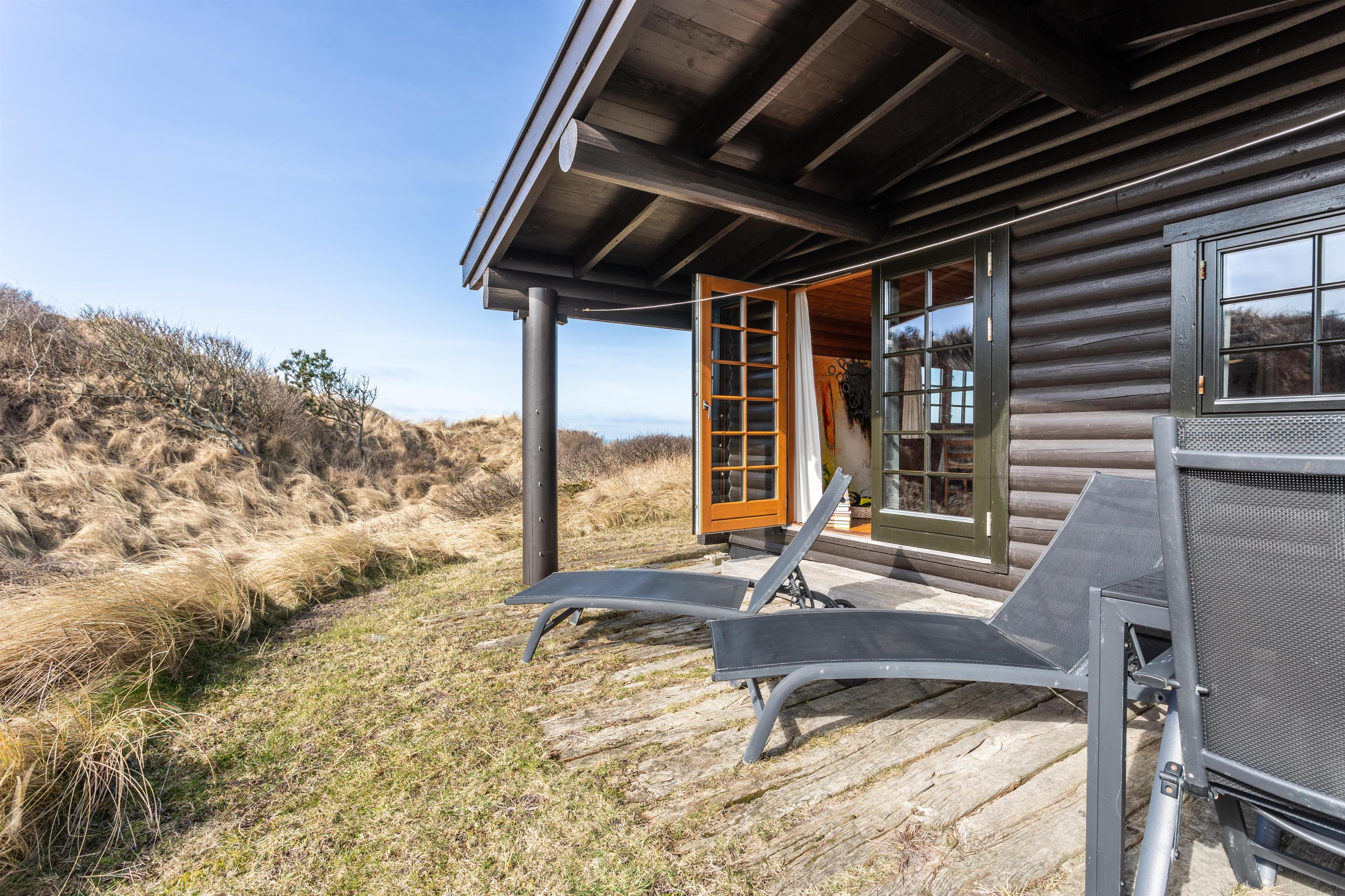 Sommerhuset ligger på en stor, kuperet naturgrund kun 200 meter fra Vesterhavet. Fra feriehuset er der direkte adgang til flere dejlige terrasser. Her kan man opholde sig helt ugeneret, mens morgenkaffen nydes. Tænd op i grillen og tilbered et lækkert måltid, som I kan nyde under den overdækkede terrasse. Her kan I slappe af og opleve den betagende solnedgang over Vesterhavet. Fra terrassen har I en fantastisk føling med sommerhuset, stranden, havet og det smukke klitlandskab.