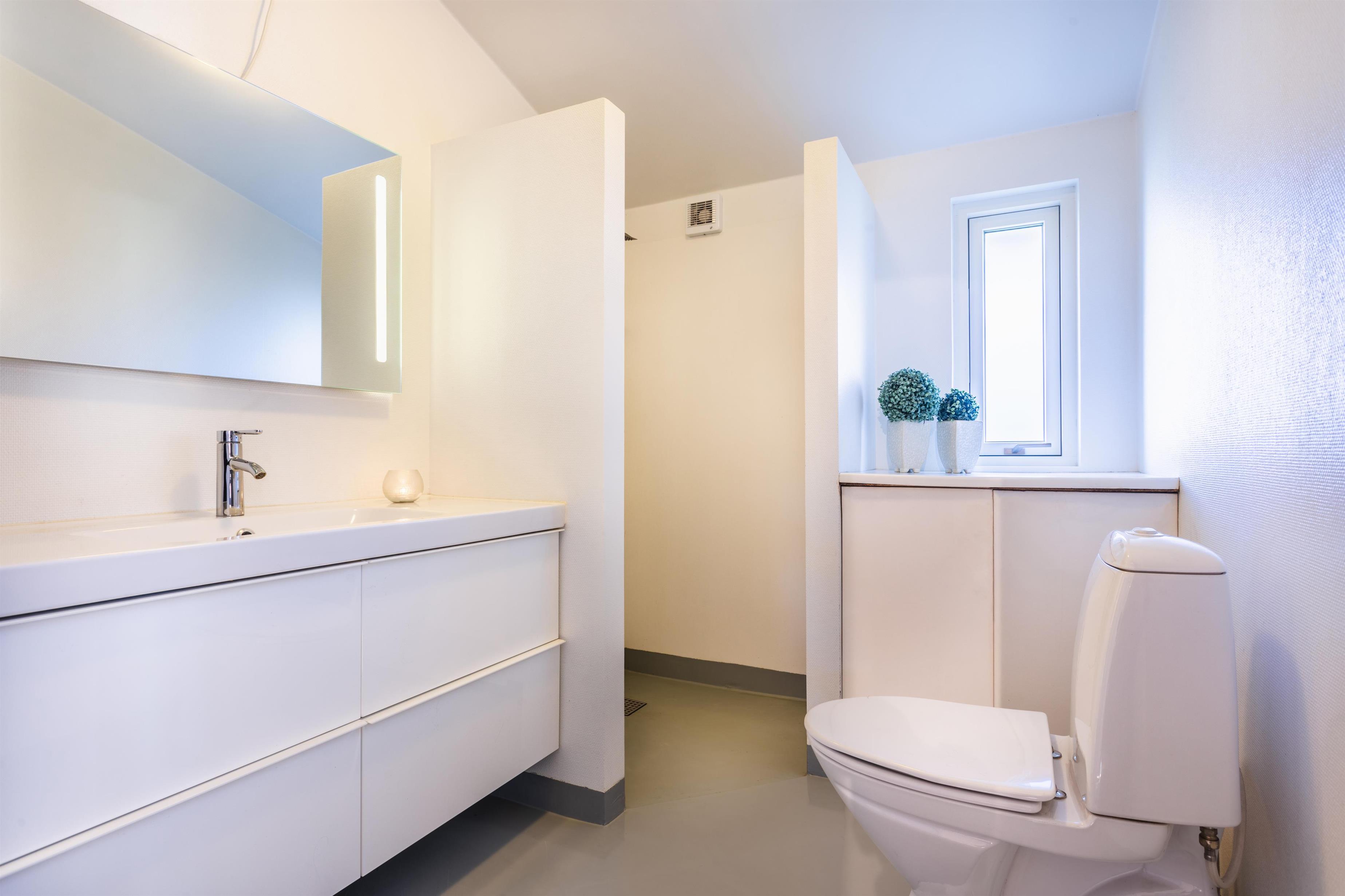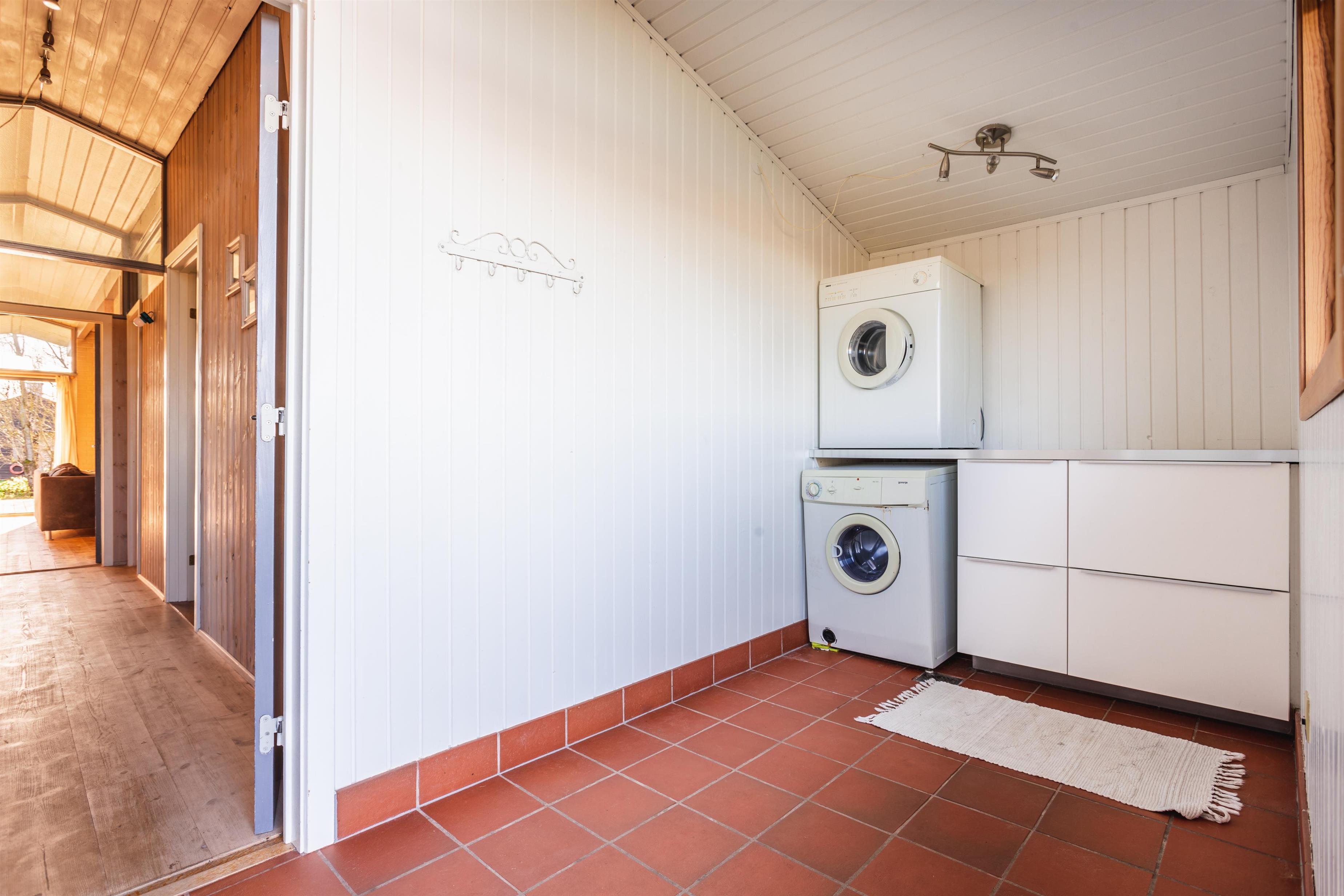 Huset har desuden tre gode soveværelser samt et lyst badeværelse med bruseniche samt adgang til vaskemaskine og tørretumbler – praktisk for familier og længere ophold.