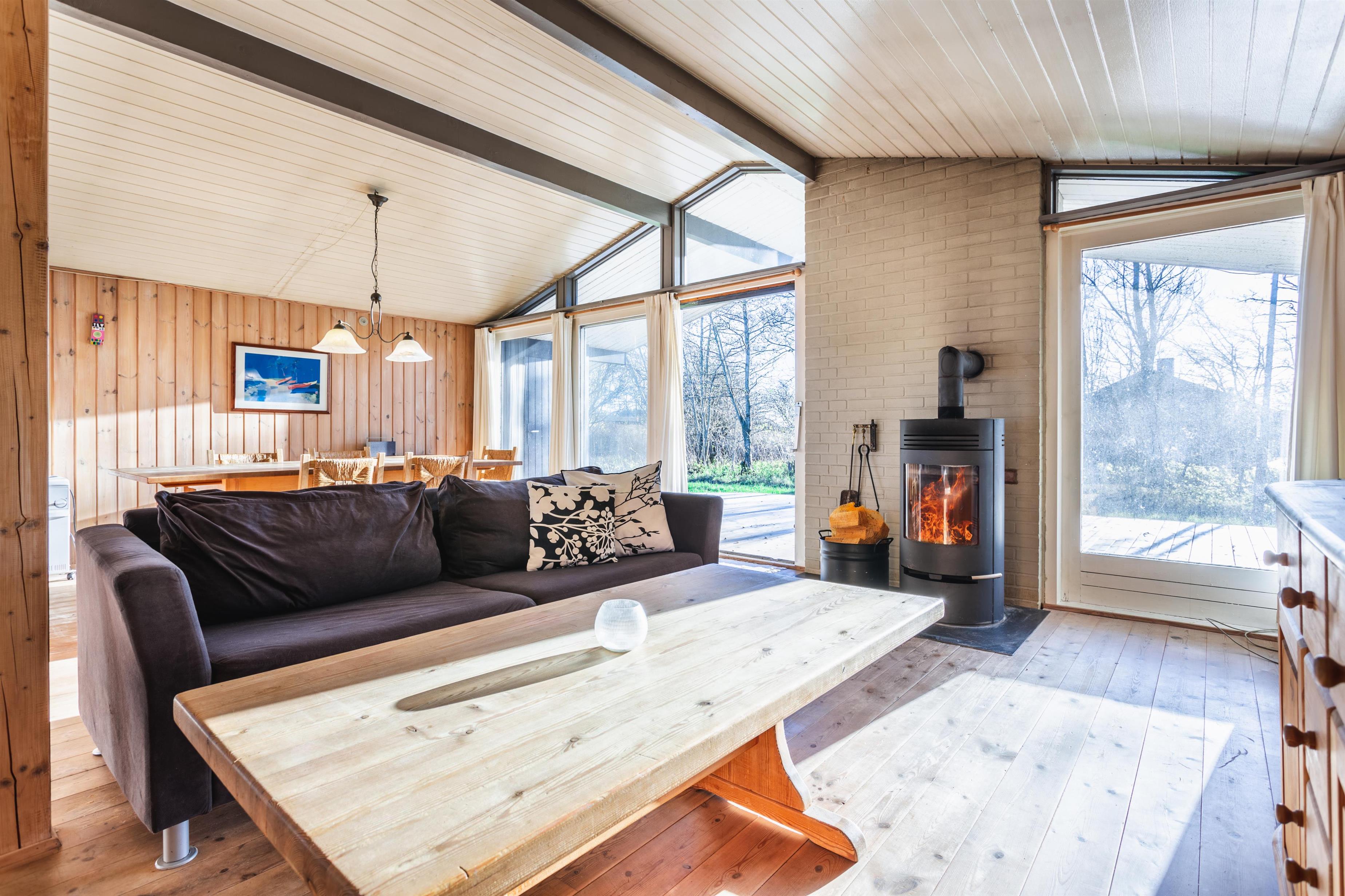 Dette charmerende sommerhus til 6 personer byder på en lys og indbydende atmosfære med loft til kip, store vinduespartier og en åben planløsning, der skaber en behagelig og rummelig stemning. Det centrale opholdsrum kombinerer stue, spisestue og køkken – perfekt til samvær og fælles ferieminder. Her finder I både brændeovn og energivenlig varmepumpe, som sikrer varme og hygge på selv de kølige dage.