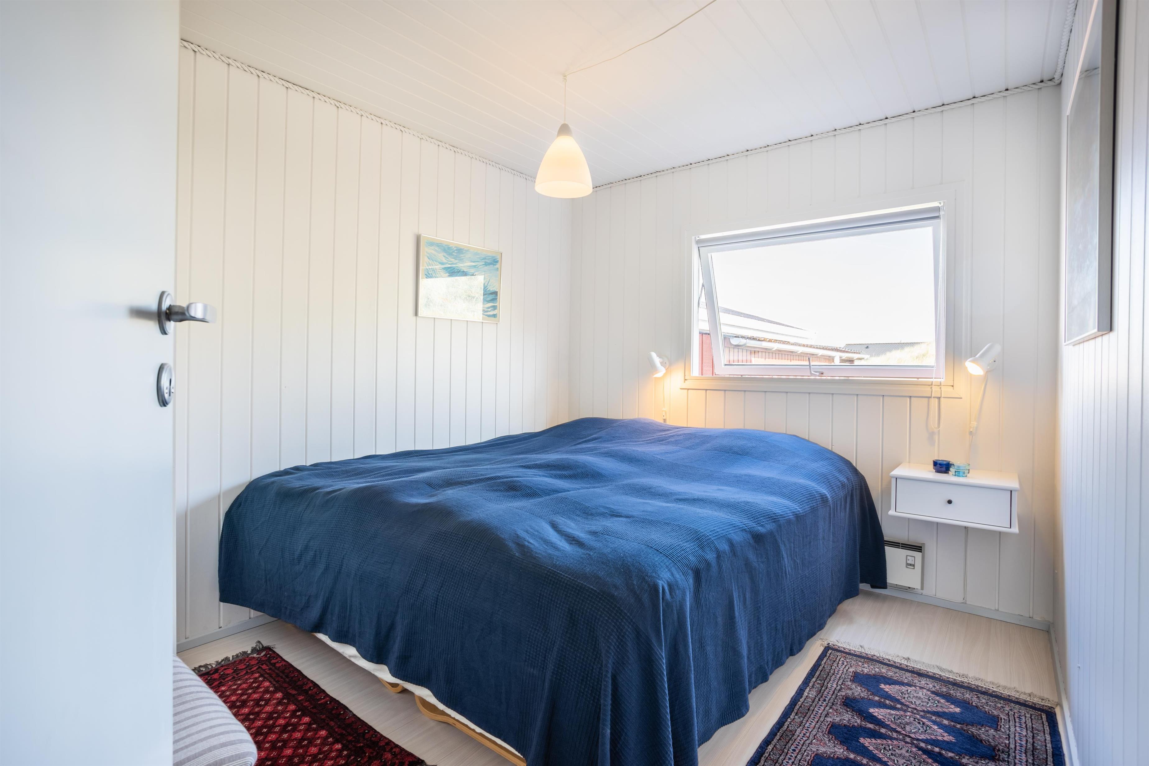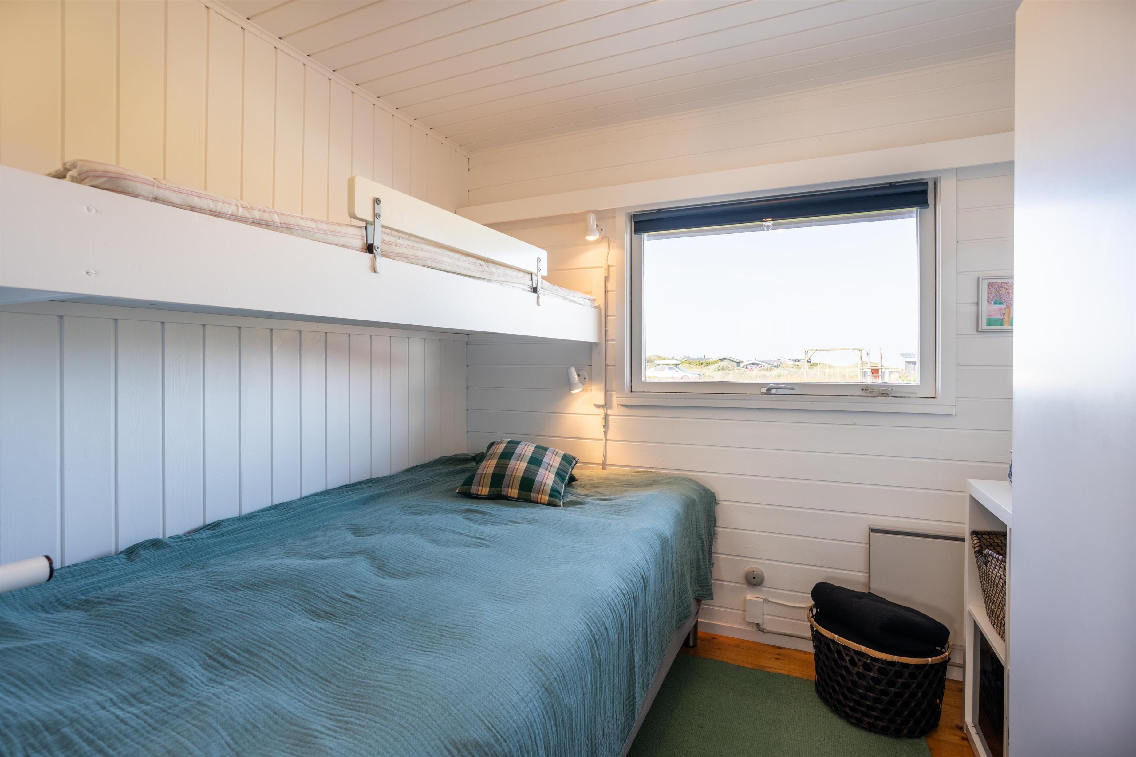 Feriehuset byder på fire gode soveværelser. To værelser har køjesenge, hvor den nederste køje er ekstra bred – perfekt til børn eller en afslappende lur i løbet af dagen.