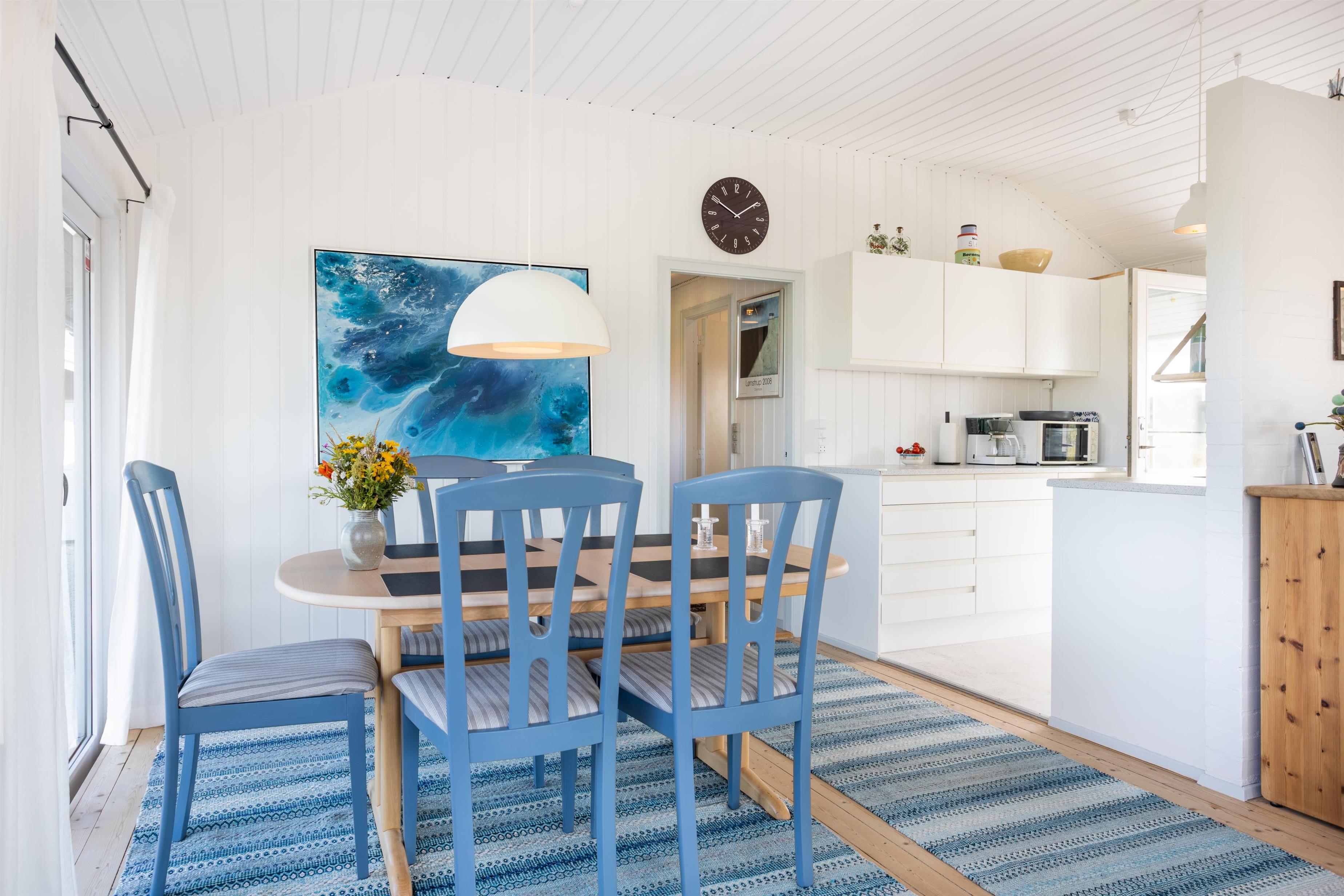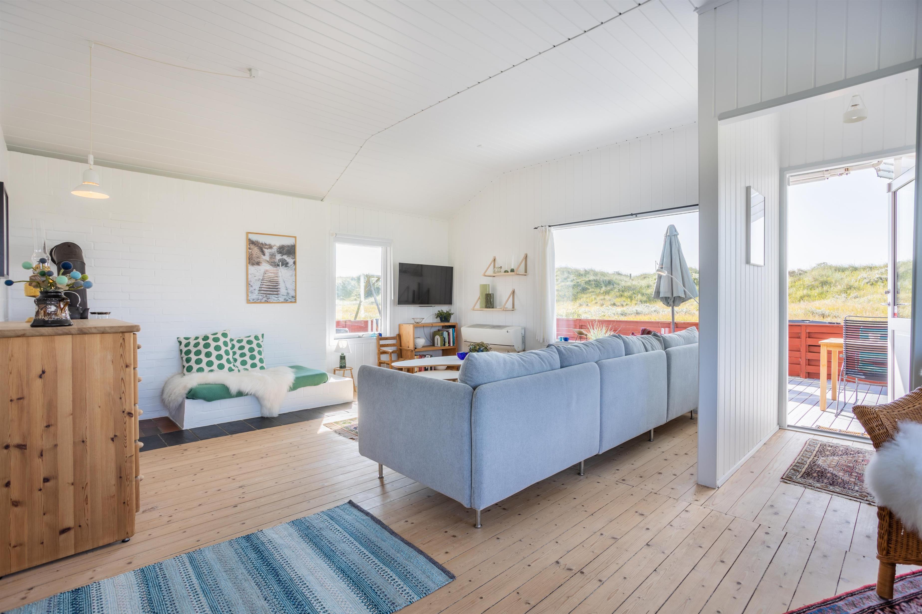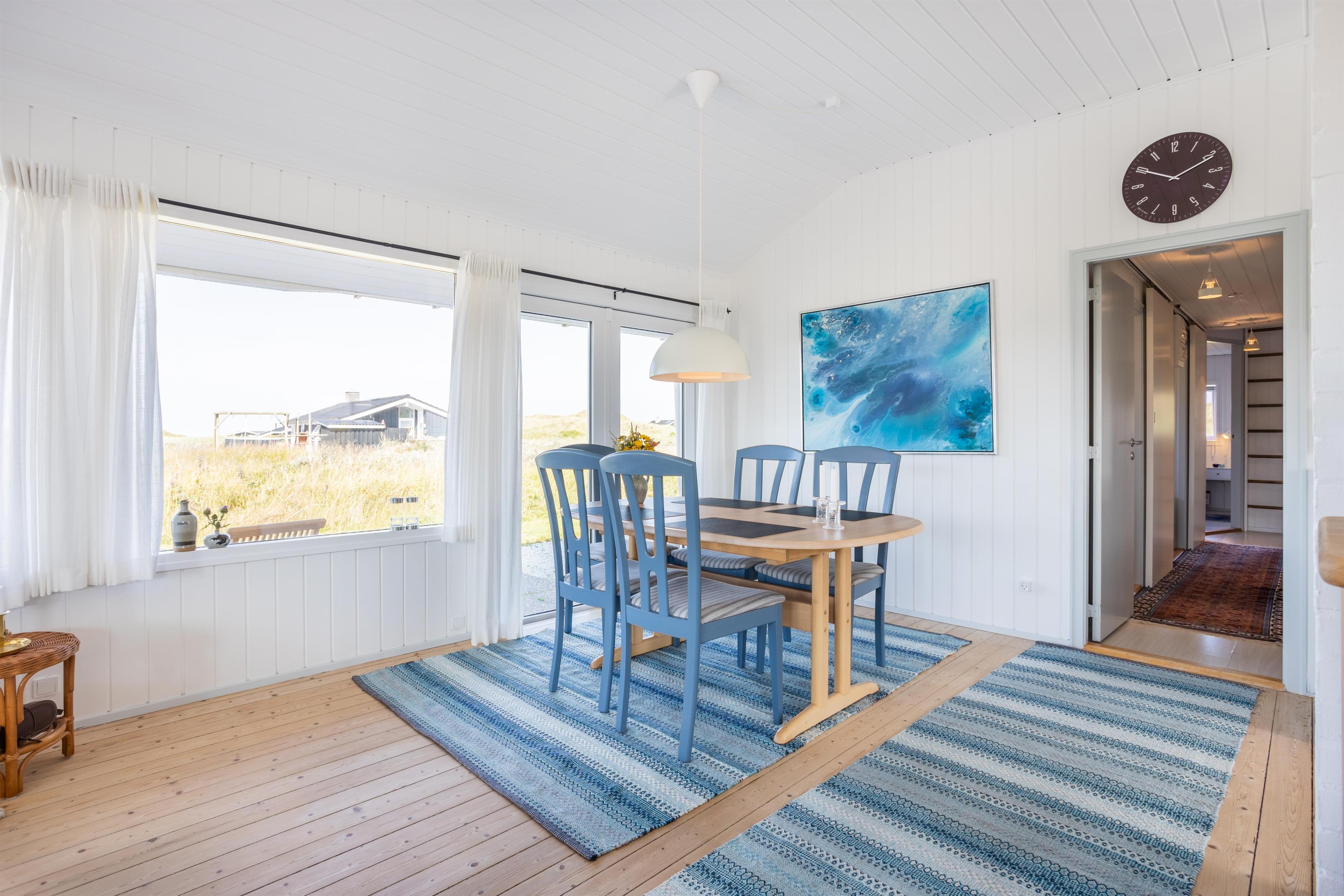 Dette rummelige sommerhus har plads til op til 6 personer og byder på en lys og velholdt indretning. Huset har en åben planløsning, hvor køkken, spisestue og opholdsstue smelter sammen og skaber rammerne for hyggelige stunder. Uanset om I spiller brætspil, deler dagens oplevelser eller nyder udsigten gennem de store vinduer, er her plads til nærvær.